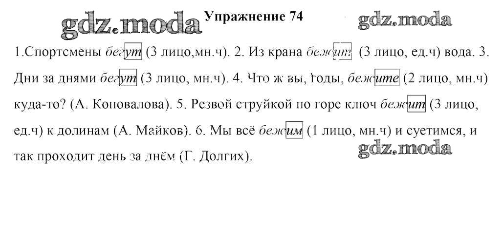 ОТВЕТ на задание № 74 Учебник по Русскому языку 4 класс Антипова