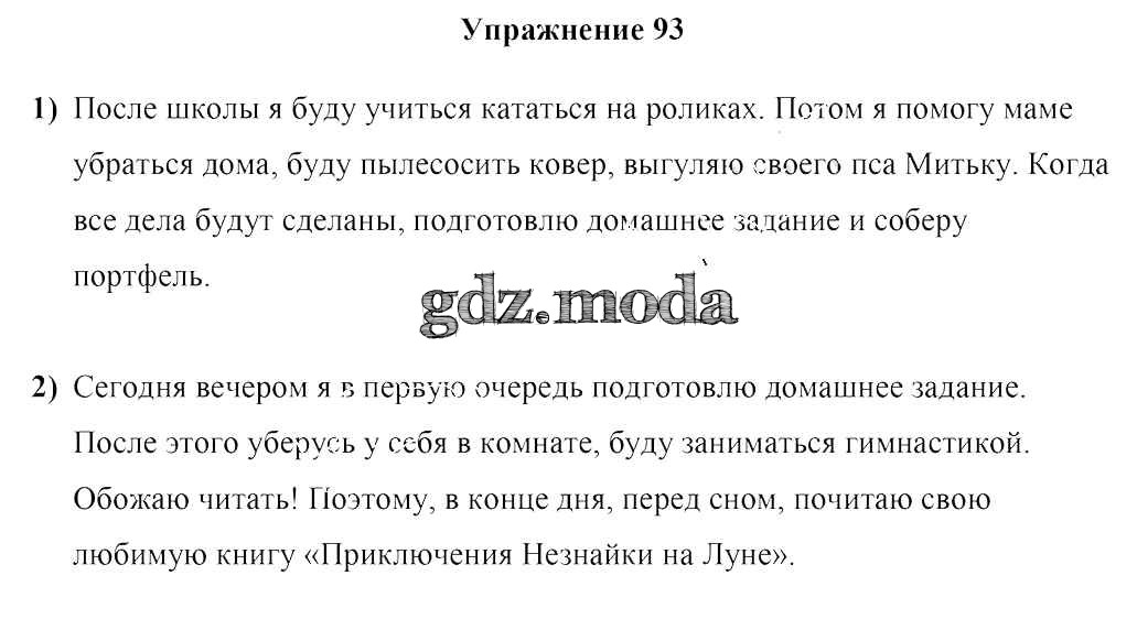 ОТВЕТ на задание № 93 Учебник по Русскому языку 4 класс Антипова