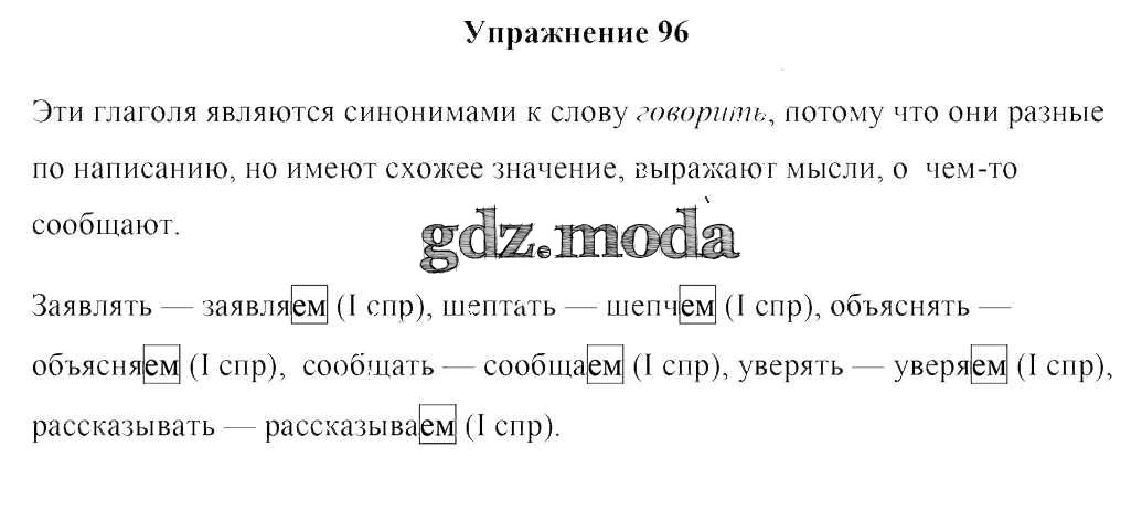 ОТВЕТ на задание № 96 Учебник по Русскому языку 4 класс Антипова