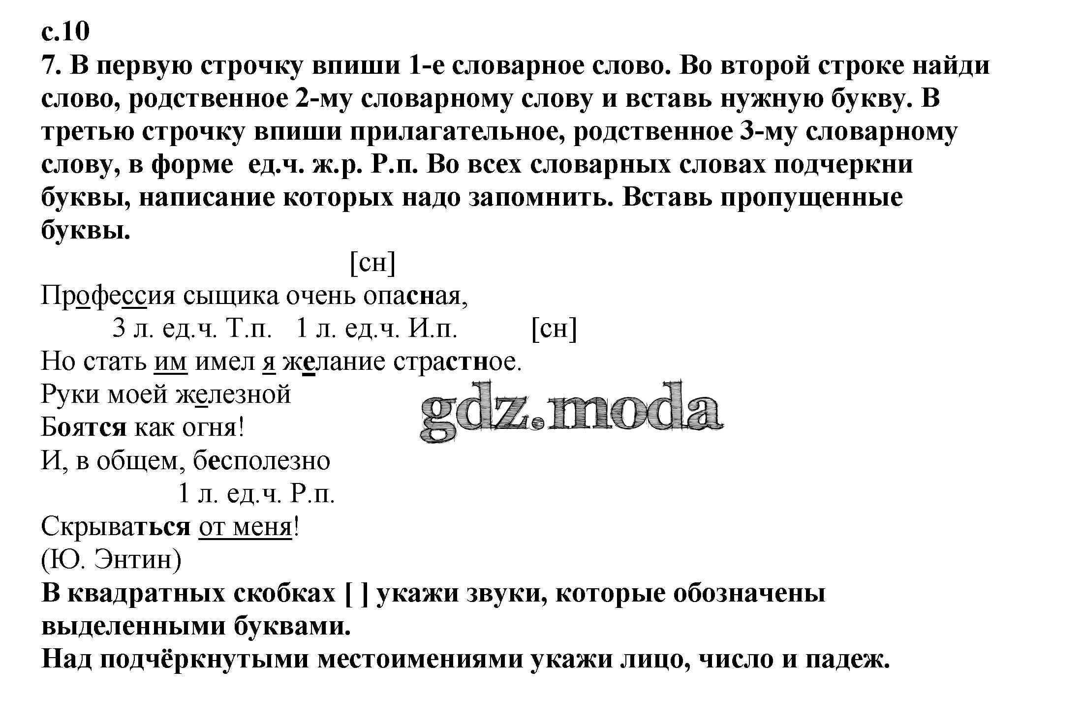 ОТВЕТ на задание № 10 Тетрадь для самостоятельной работы по Русскому языку 4 класс Байкова