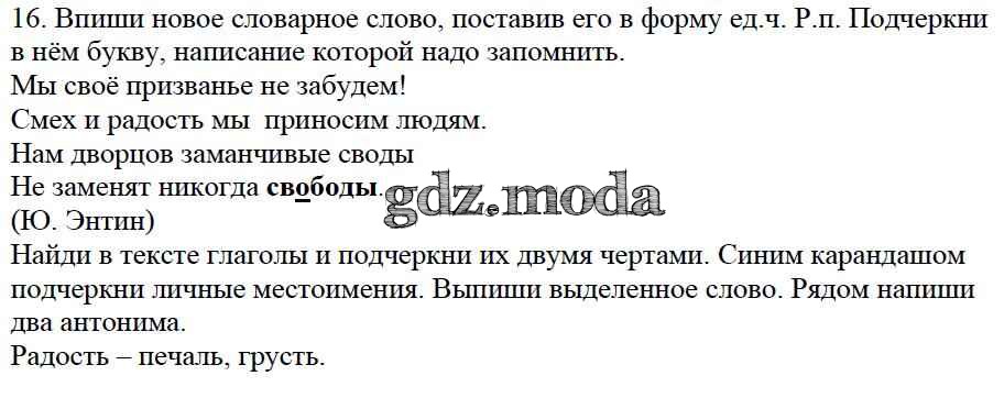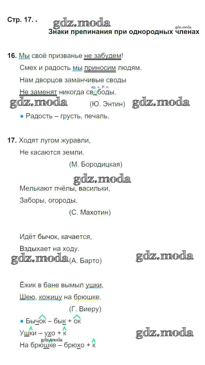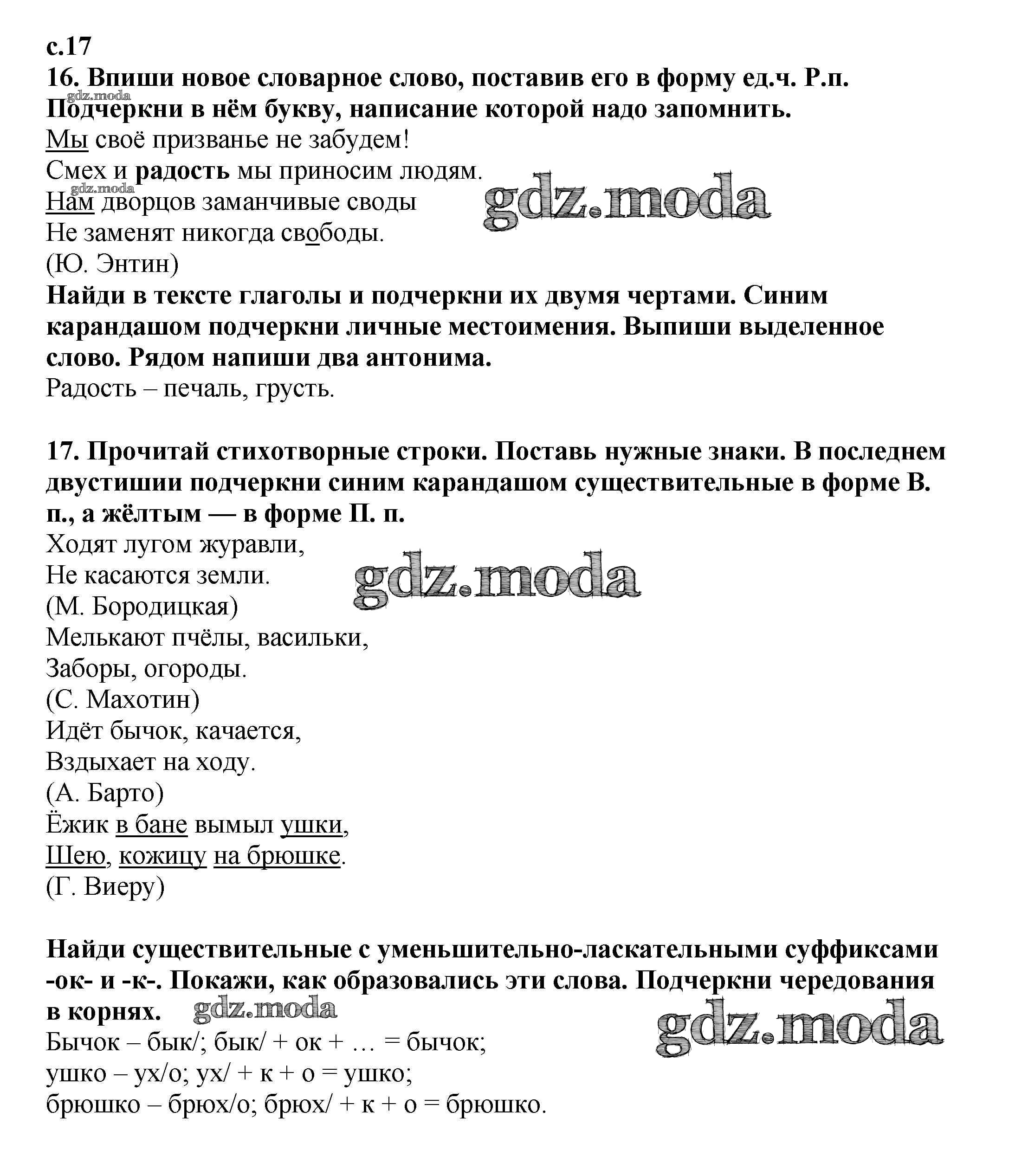 ОТВЕТ на задание № 17 Тетрадь для самостоятельной работы по Русскому языку 4 класс Байкова
