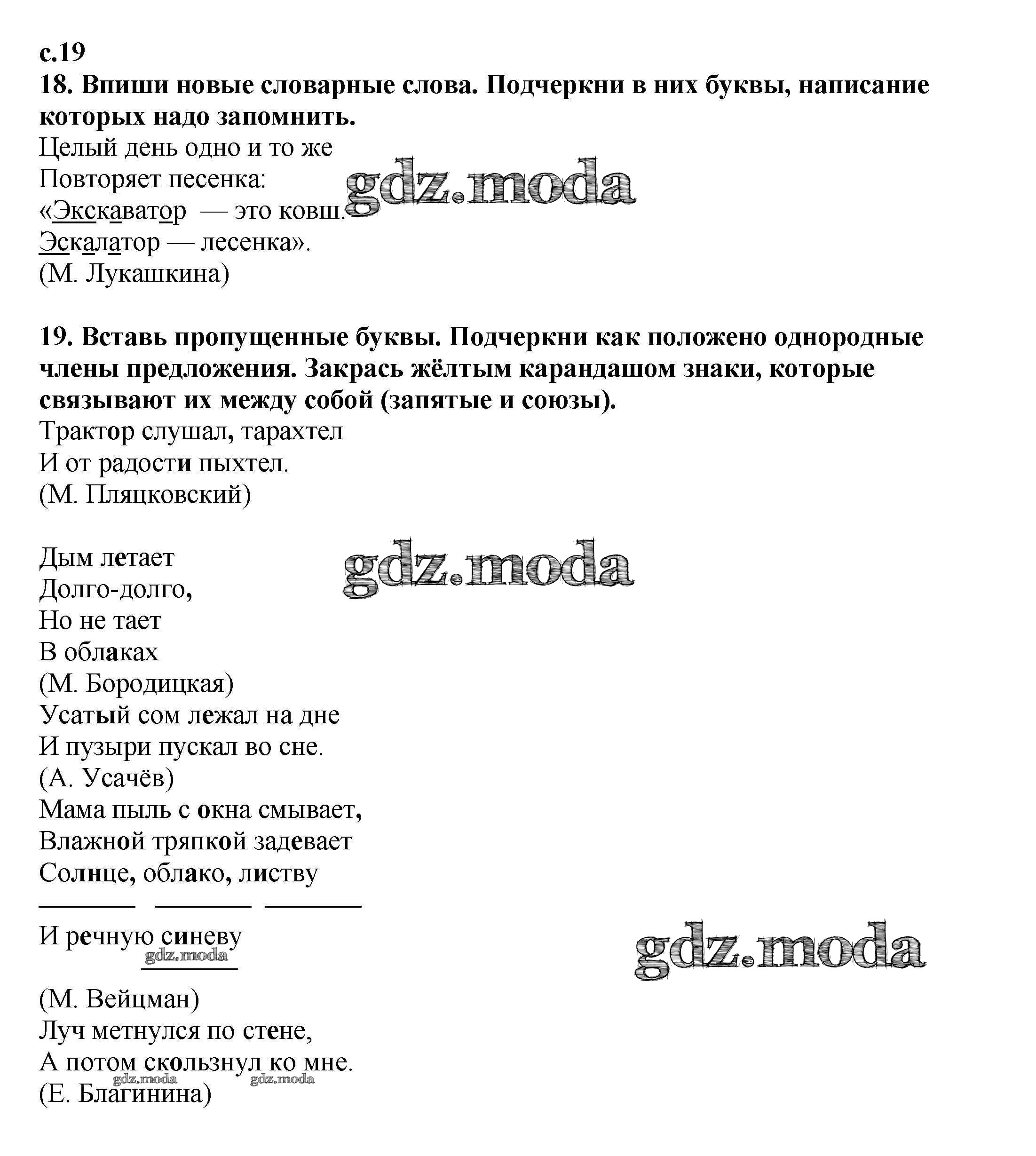 ОТВЕТ на задание № 19 Тетрадь для самостоятельной работы по Русскому языку 4 класс Байкова