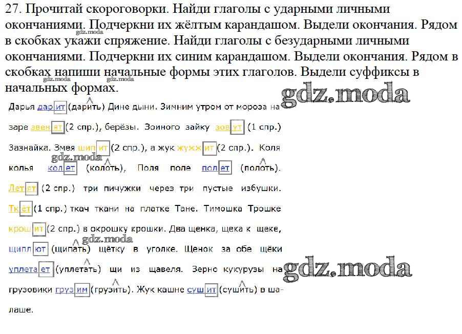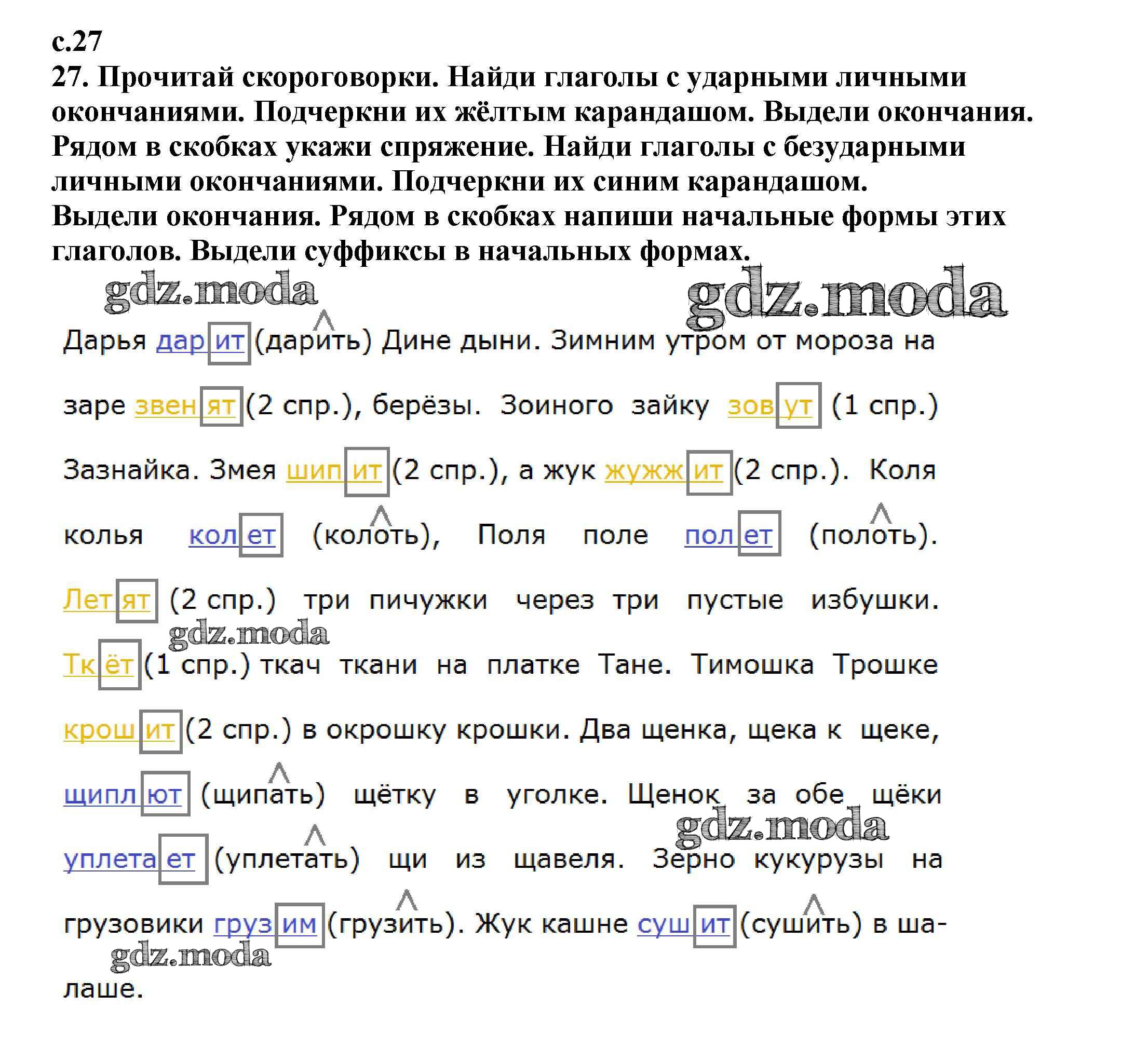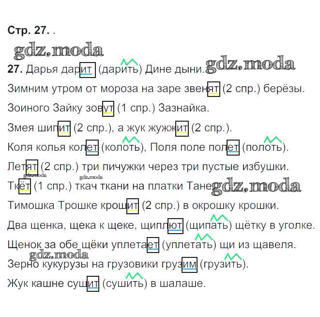 ОТВЕТ на задание № 27 Тетрадь для самостоятельной работы по Русскому языку 4 класс Байкова
