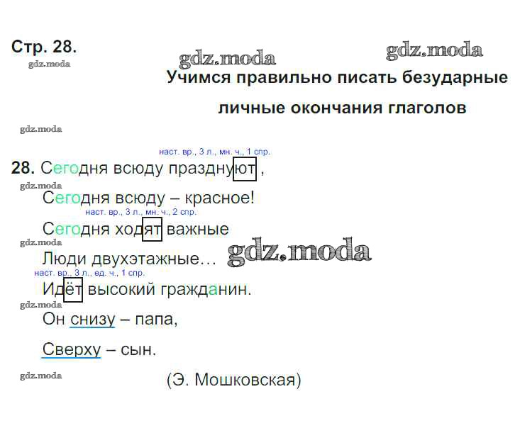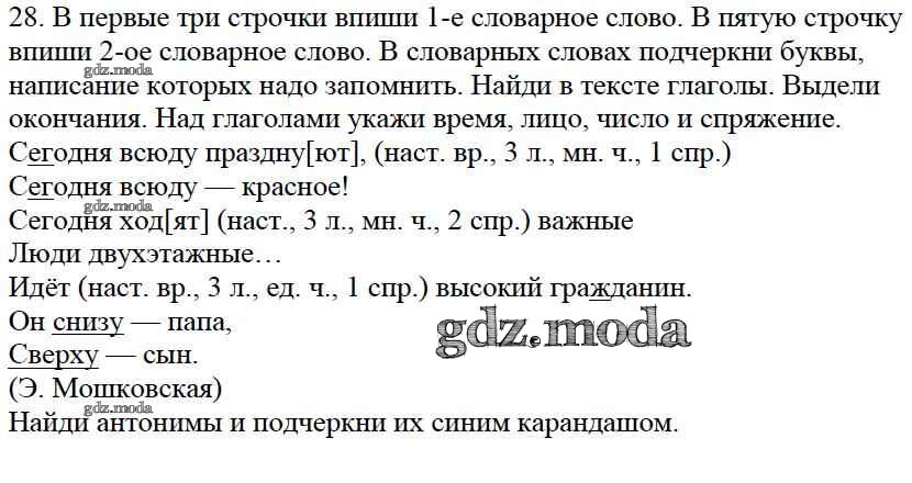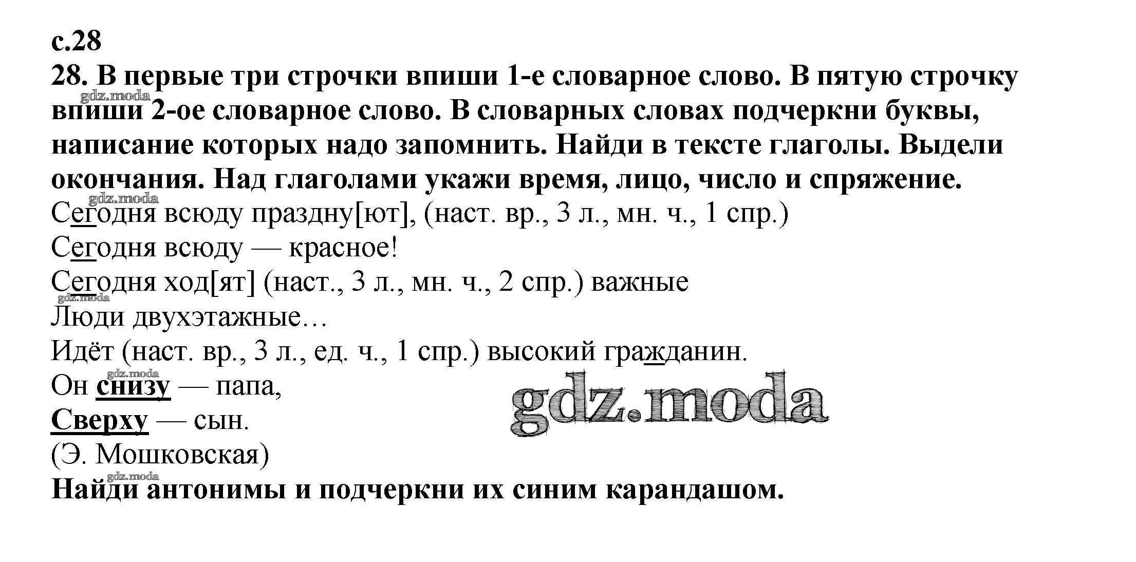 ОТВЕТ на задание № 28 Тетрадь для самостоятельной работы по Русскому языку 4 класс Байкова