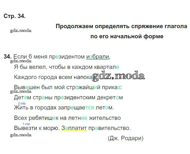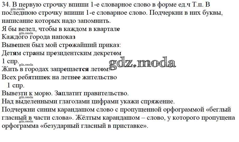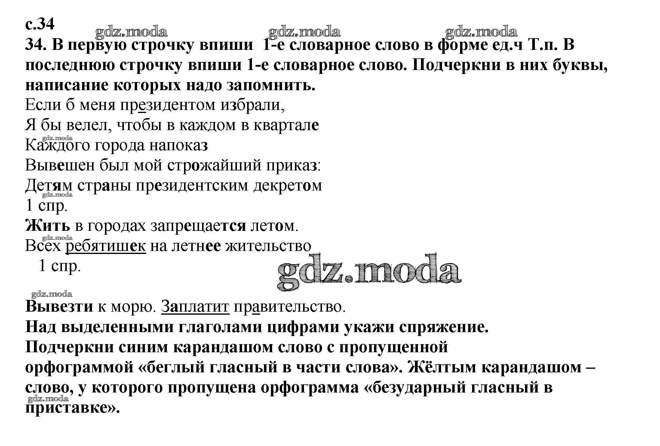 ОТВЕТ на задание № 34 Тетрадь для самостоятельной работы по Русскому языку 4 класс Байкова