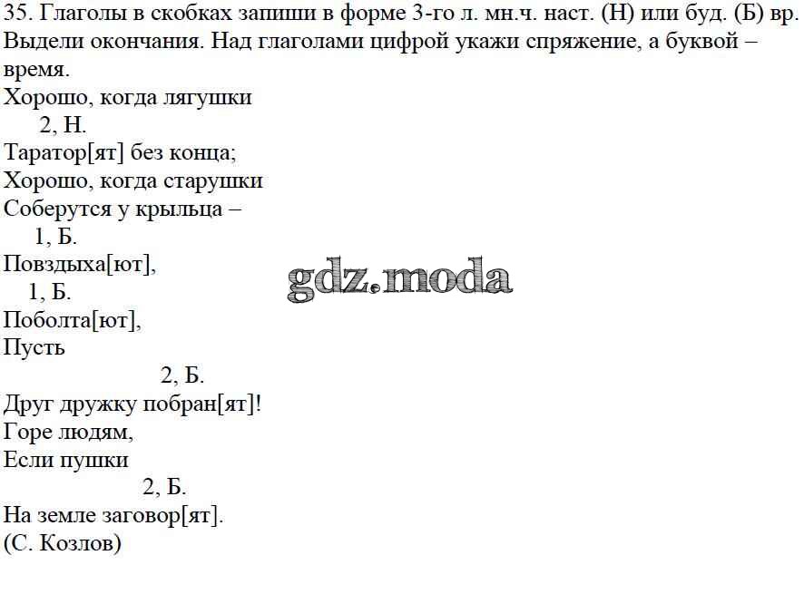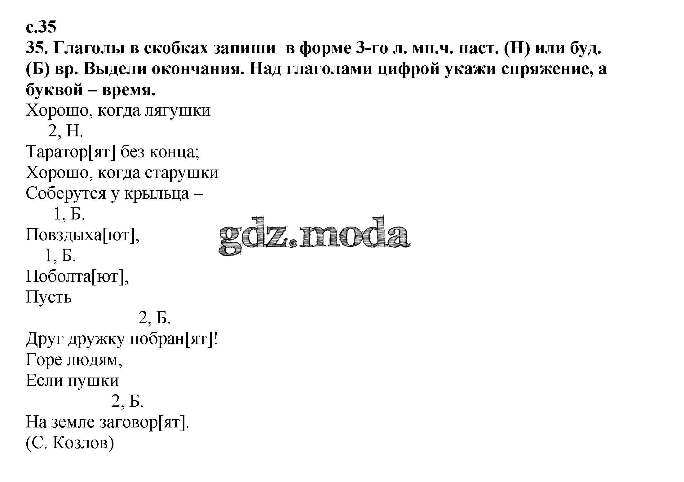 ОТВЕТ на задание № 35 Тетрадь для самостоятельной работы по Русскому языку 4 класс Байкова