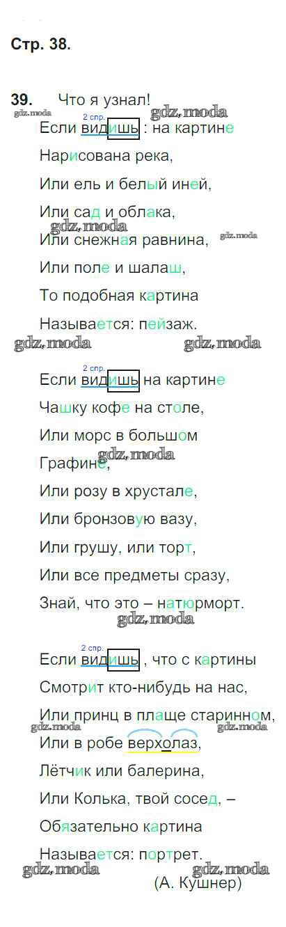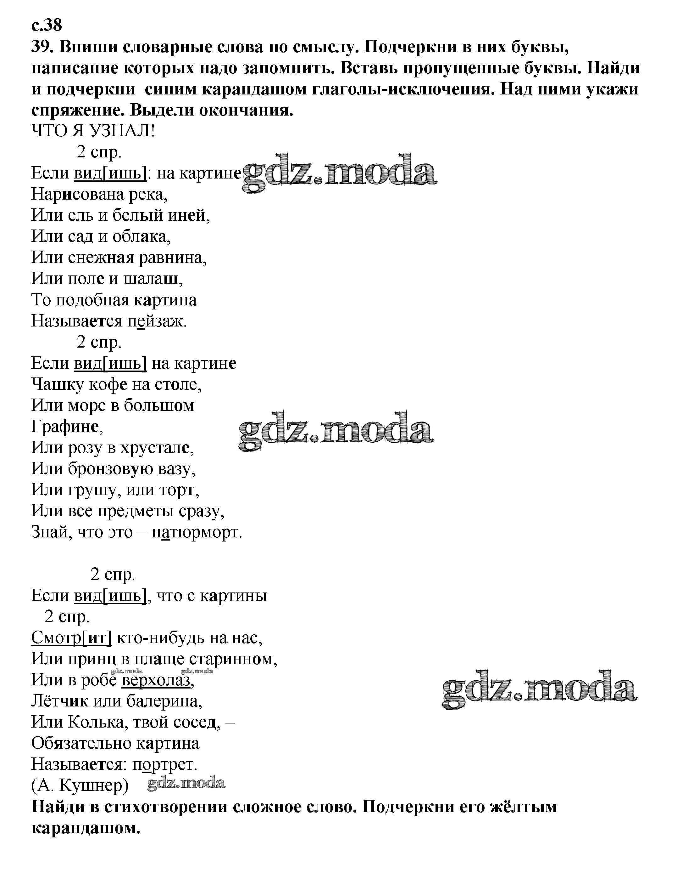 ОТВЕТ на задание № 38 Тетрадь для самостоятельной работы по Русскому языку 4 класс Байкова