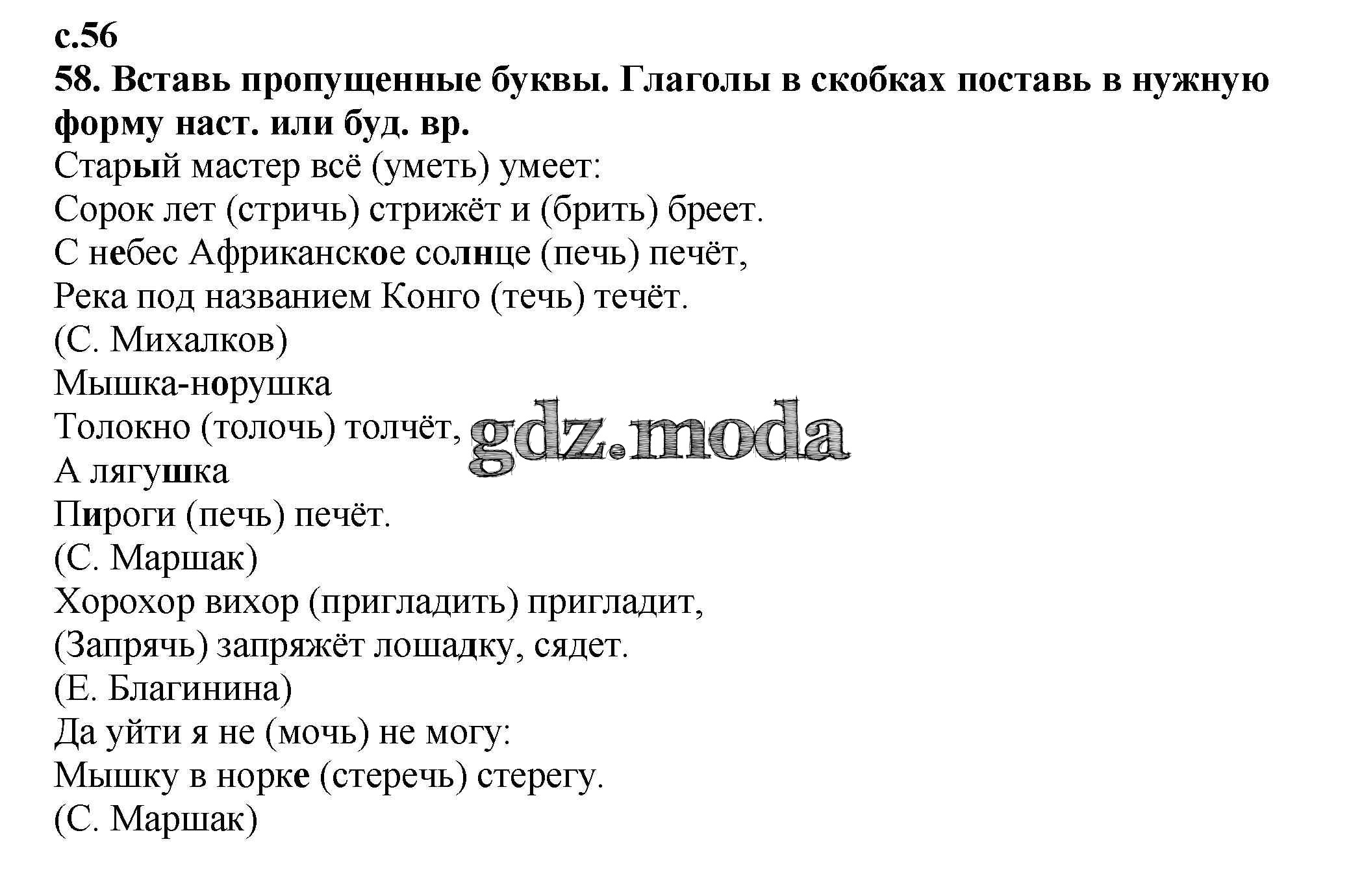 ОТВЕТ на задание № 56 Тетрадь для самостоятельной работы по Русскому языку 4 класс Байкова