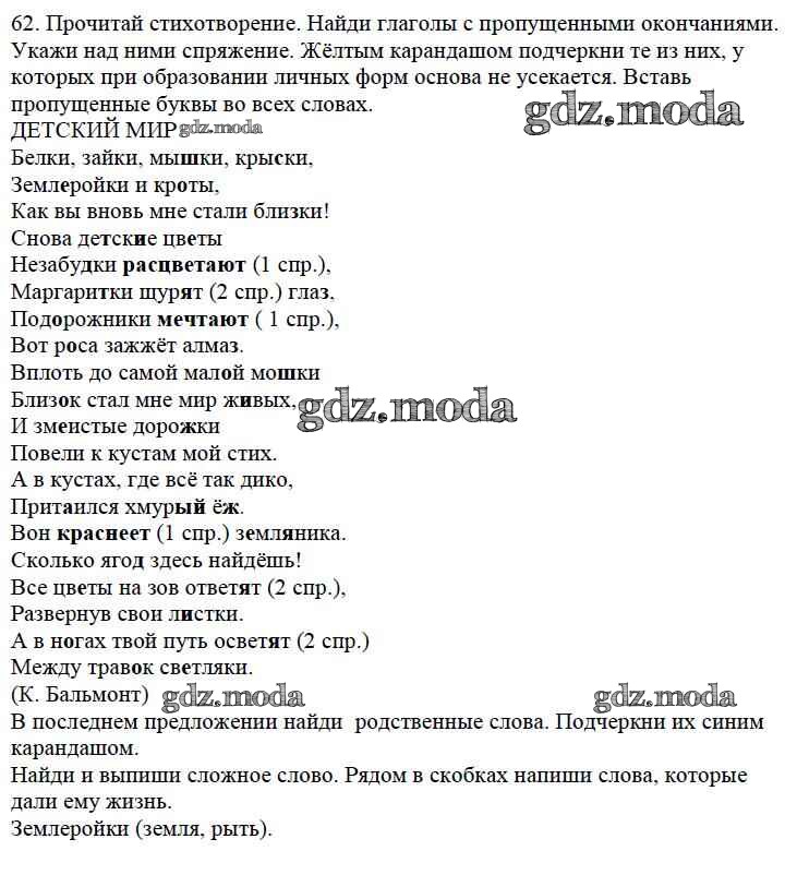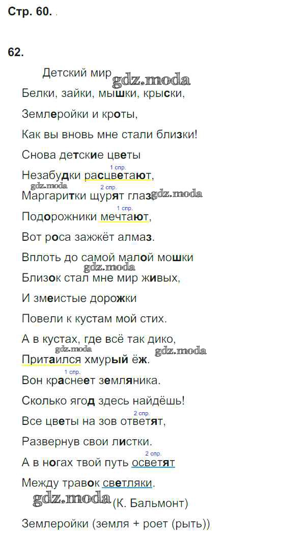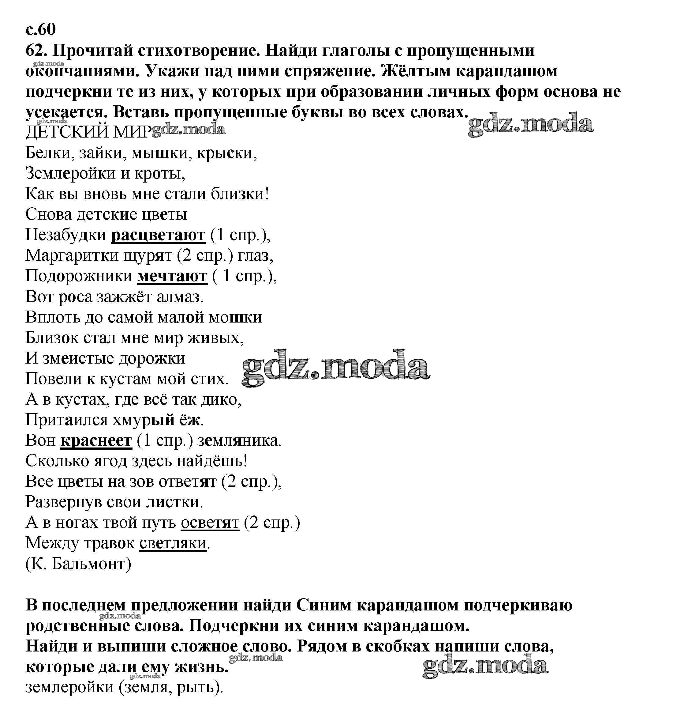 ОТВЕТ на задание № 60 Тетрадь для самостоятельной работы по Русскому языку 4 класс Байкова