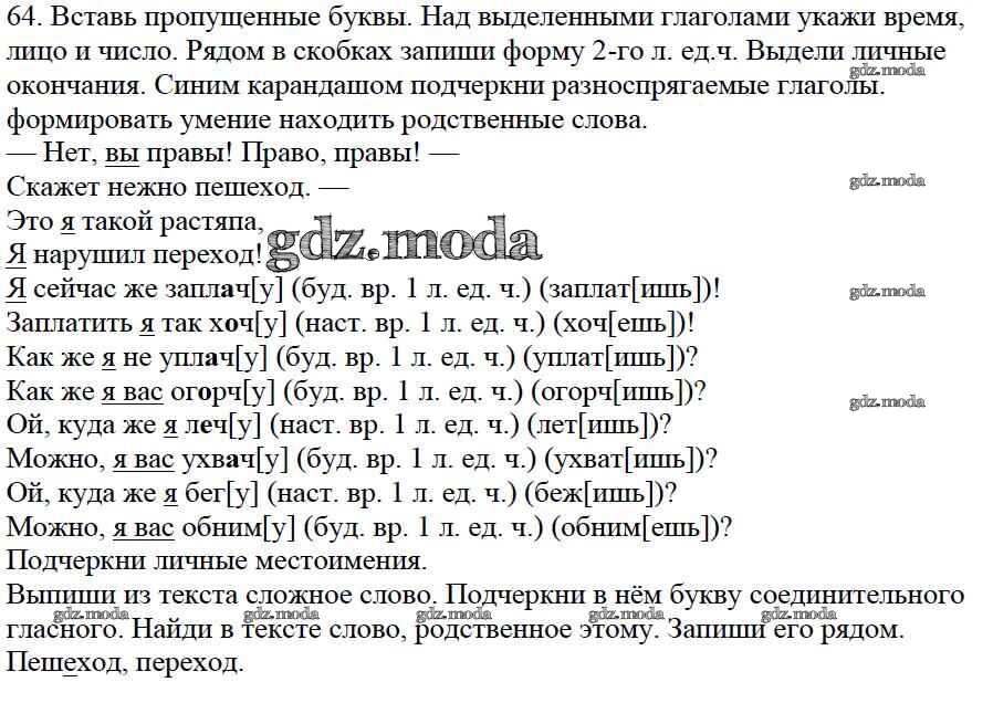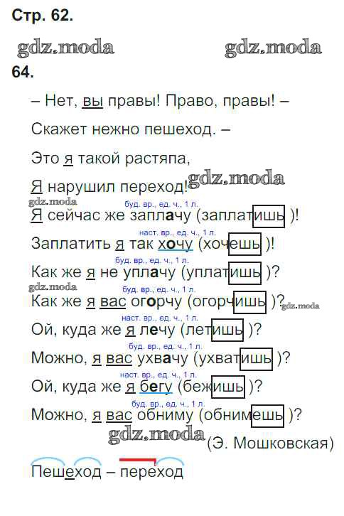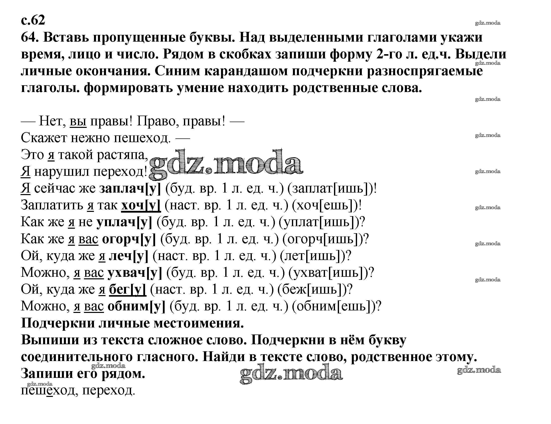 ОТВЕТ на задание № 62 Тетрадь для самостоятельной работы по Русскому языку 4 класс Байкова