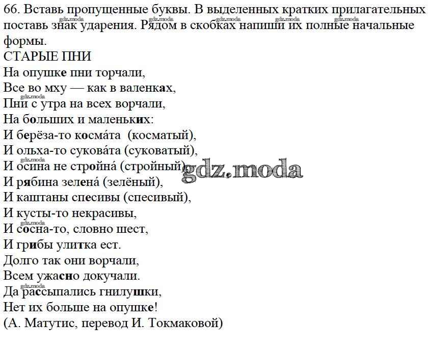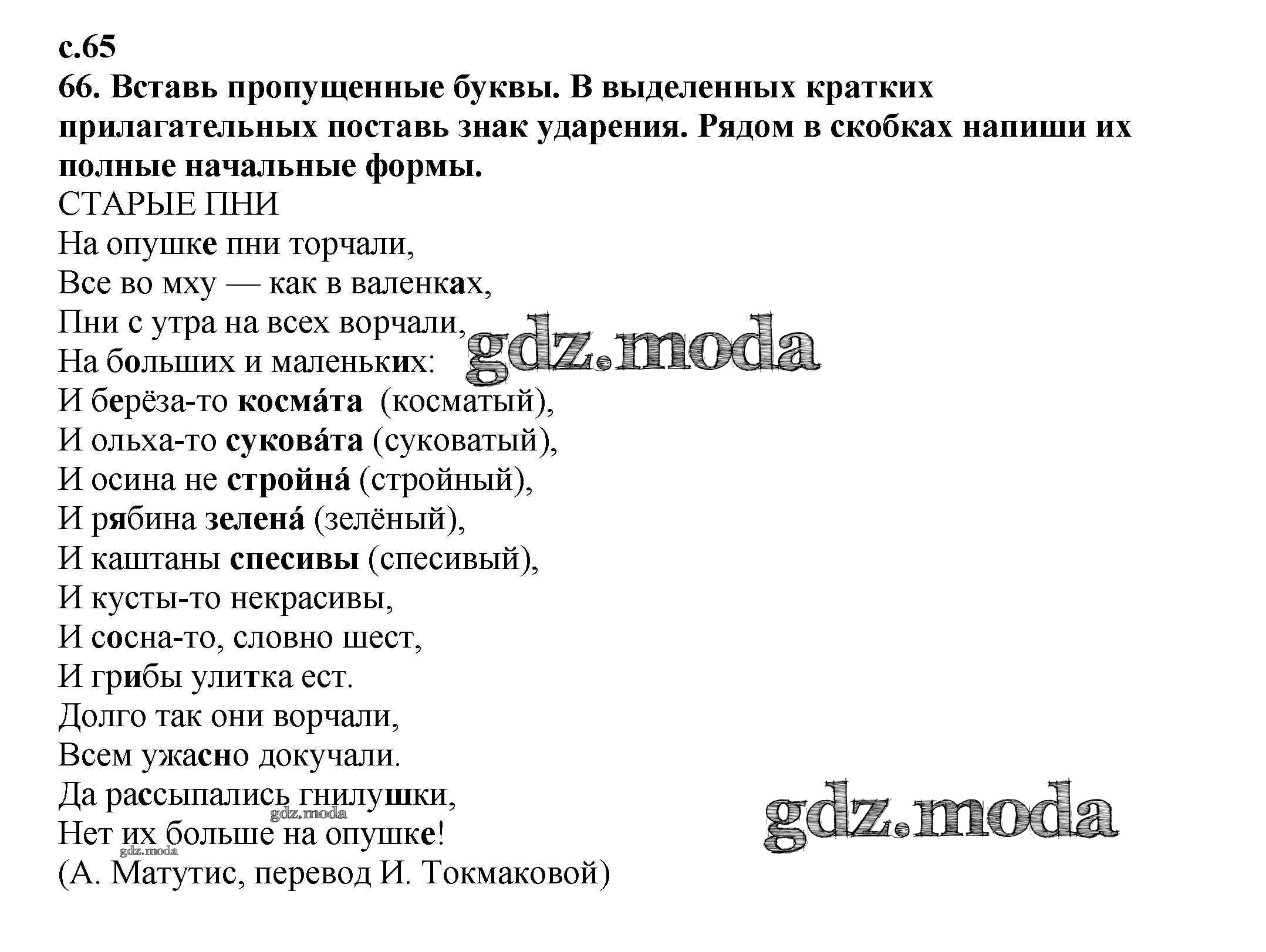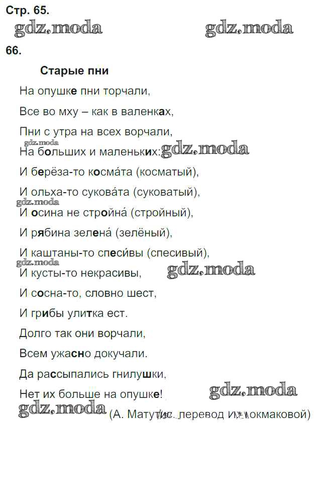ОТВЕТ на задание № 65 Тетрадь для самостоятельной работы по Русскому языку 4 класс Байкова