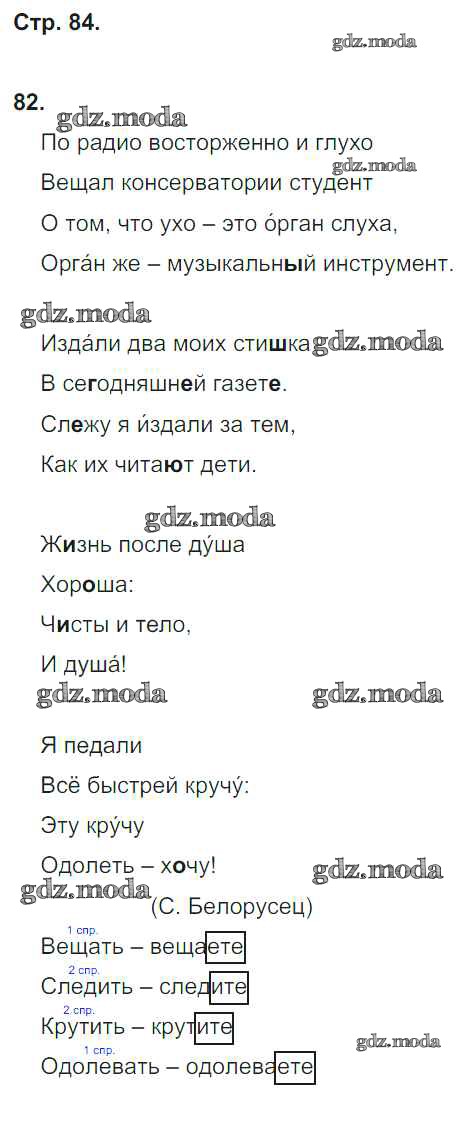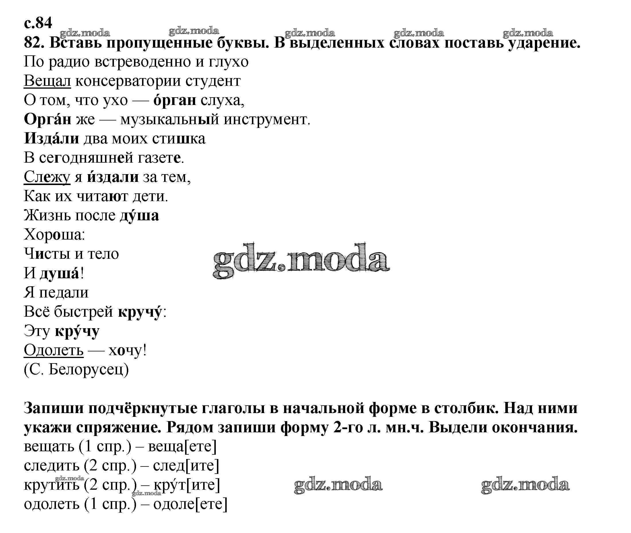 ОТВЕТ на задание № 84 Тетрадь для самостоятельной работы по Русскому языку 4 класс Байкова