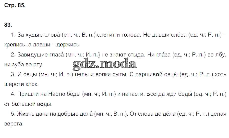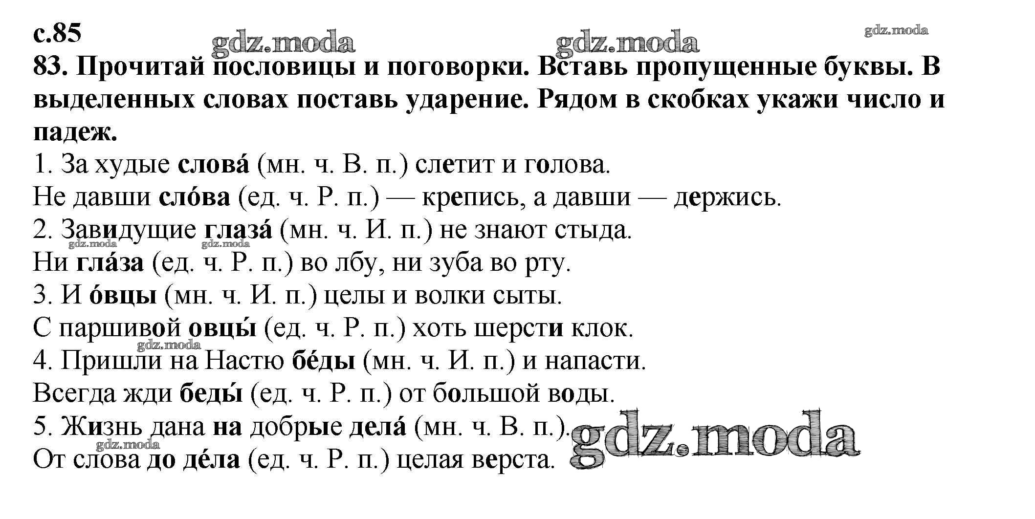 ОТВЕТ на задание № 85 Тетрадь для самостоятельной работы по Русскому языку 4 класс Байкова