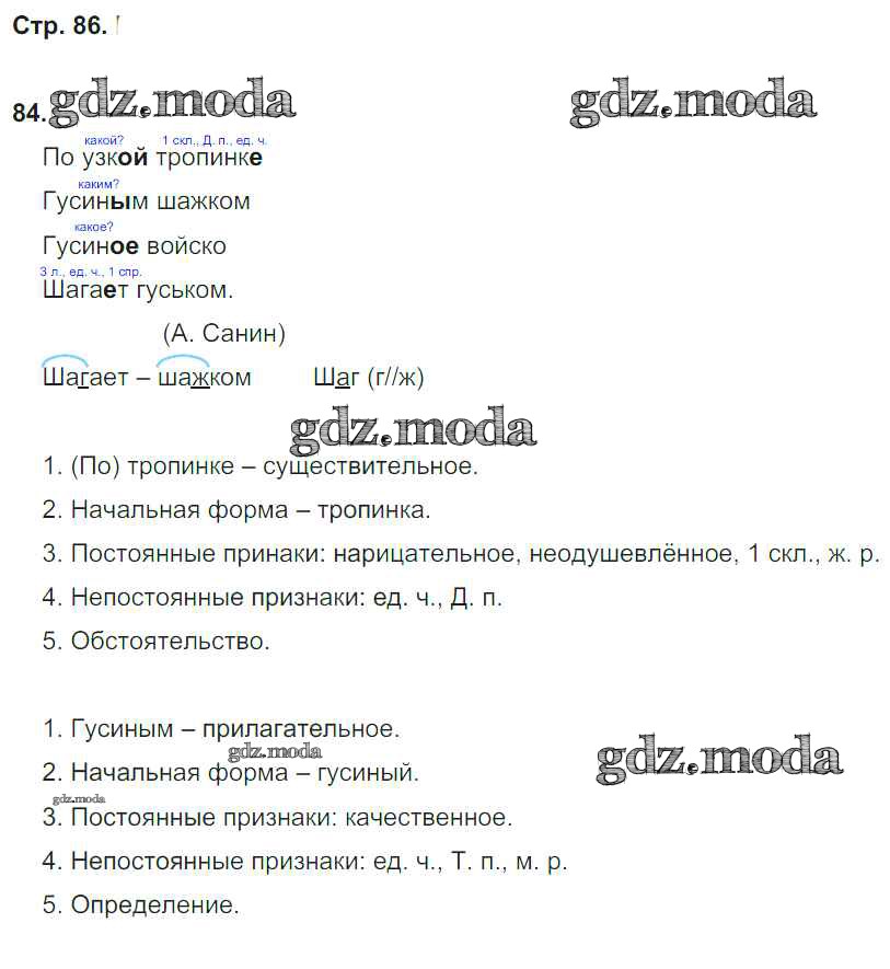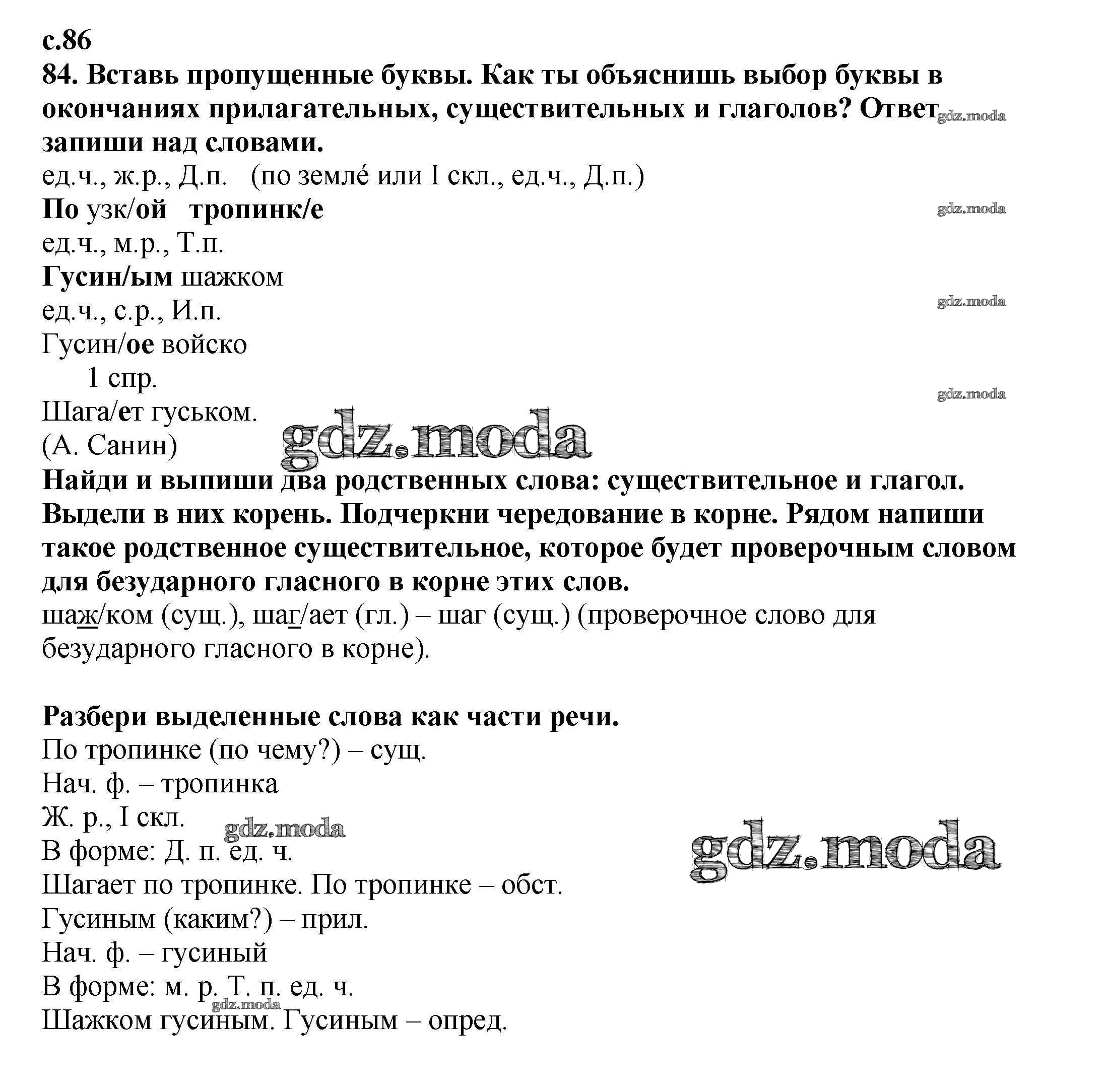 ОТВЕТ на задание № 86 Тетрадь для самостоятельной работы по Русскому языку 4 класс Байкова