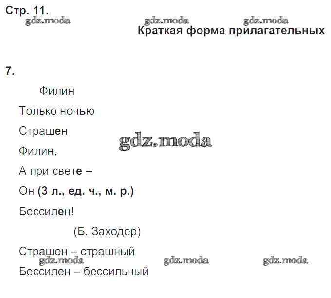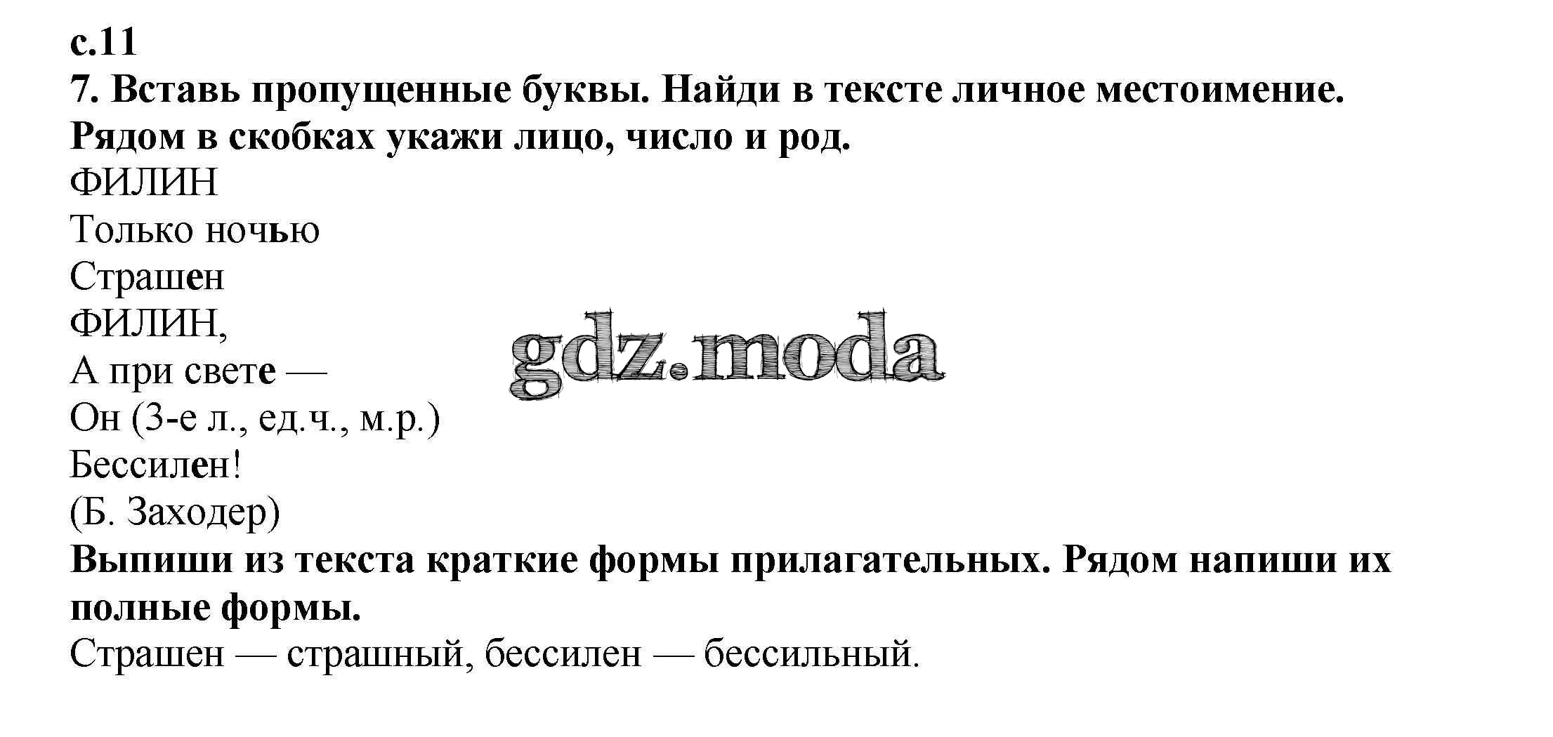 ОТВЕТ на задание № 11 Тетрадь для самостоятельной работы по Русскому языку 4 класс Байкова
