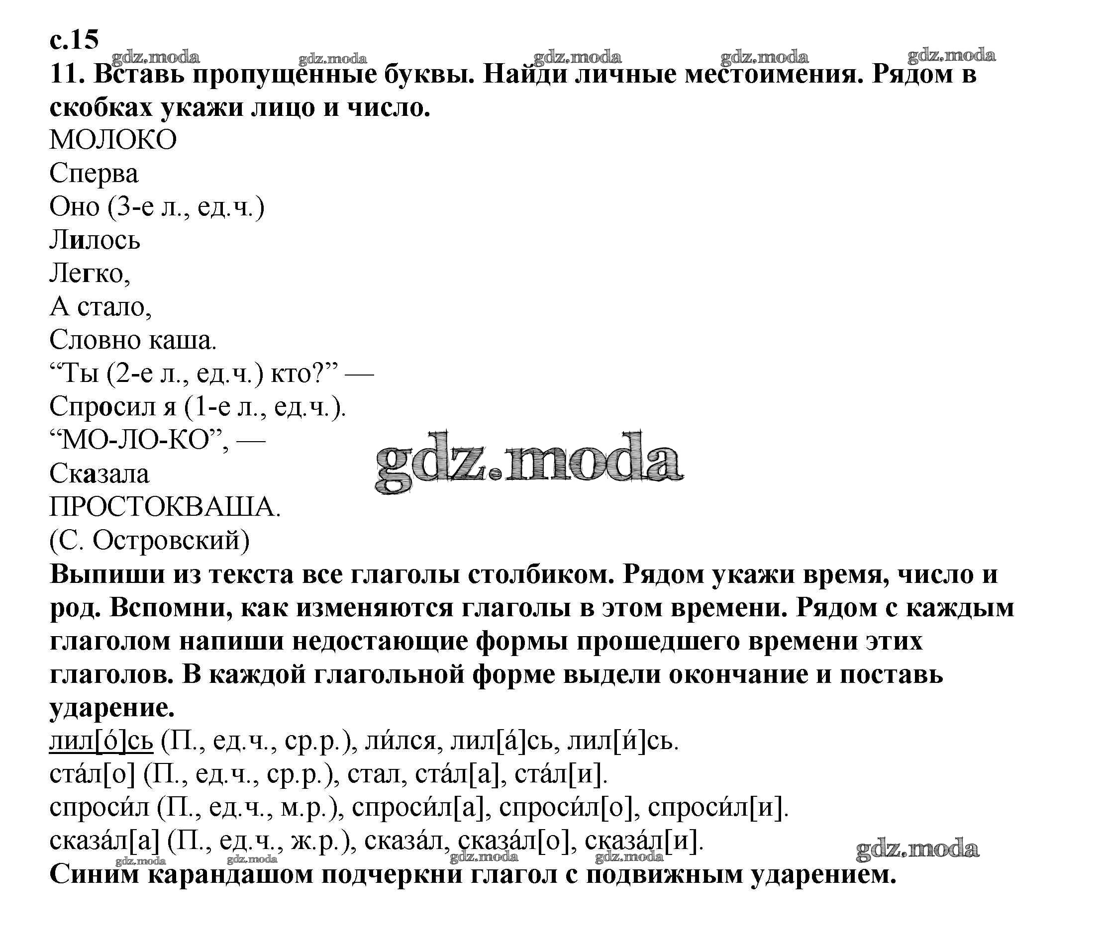 ОТВЕТ на задание № 15 Тетрадь для самостоятельной работы по Русскому языку 4 класс Байкова