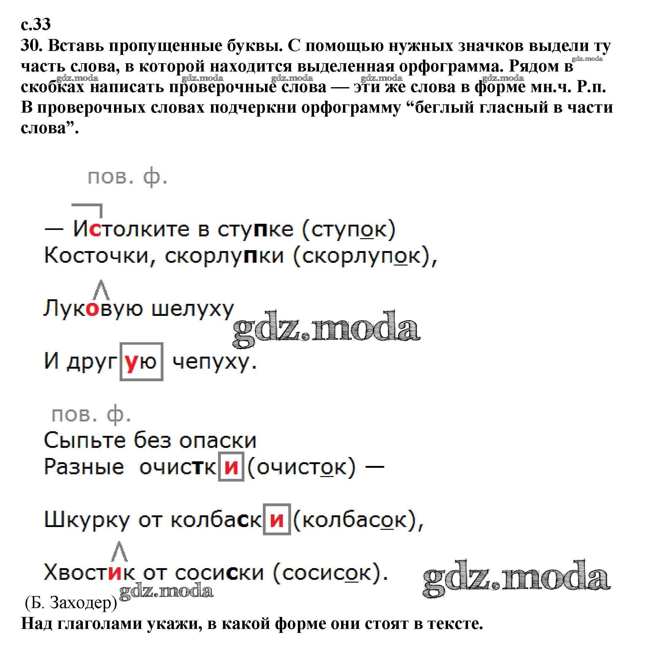 ОТВЕТ на задание № 33 Тетрадь для самостоятельной работы по Русскому языку 4 класс Байкова