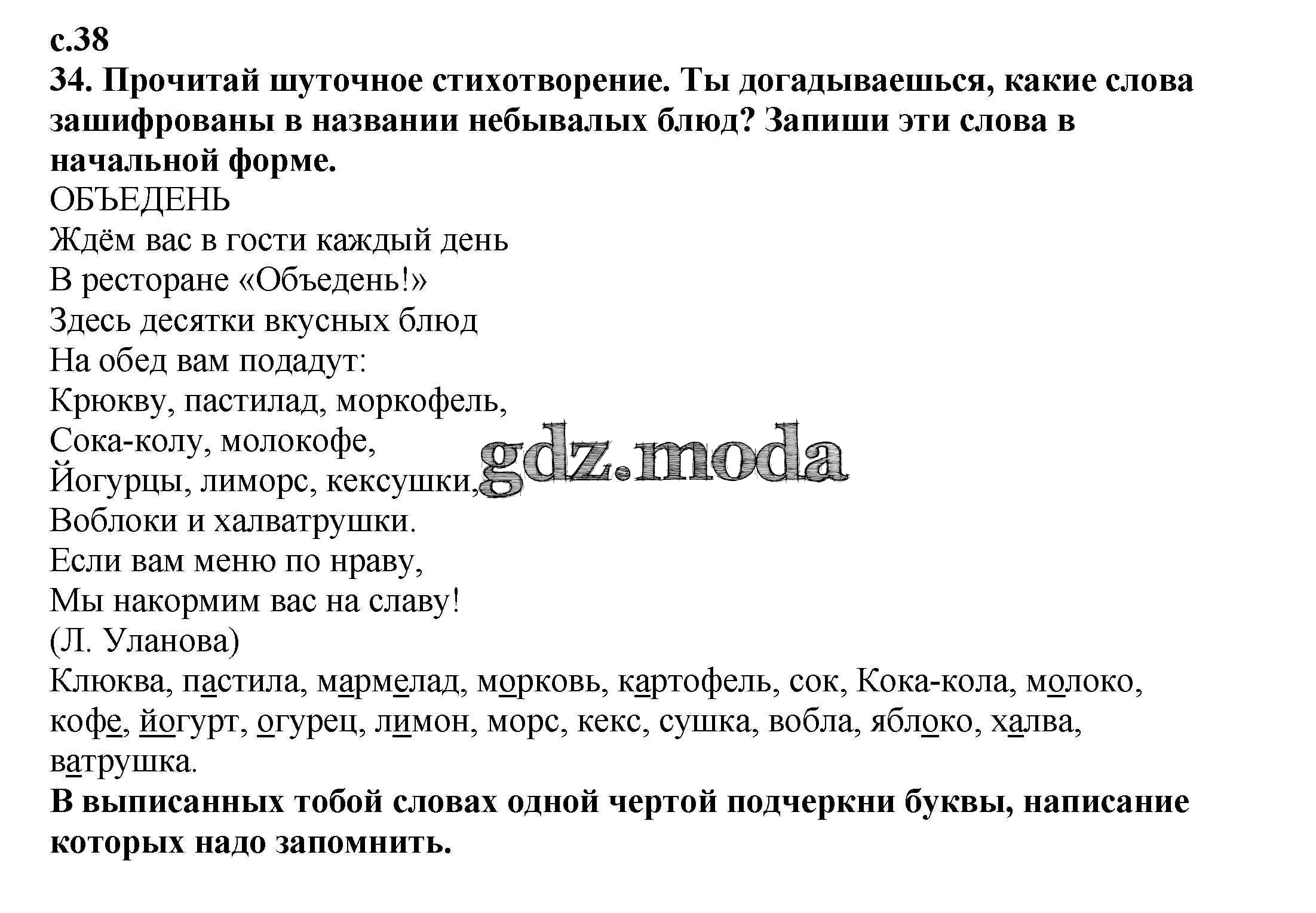 ОТВЕТ на задание № 38 Тетрадь для самостоятельной работы по Русскому языку 4 класс Байкова