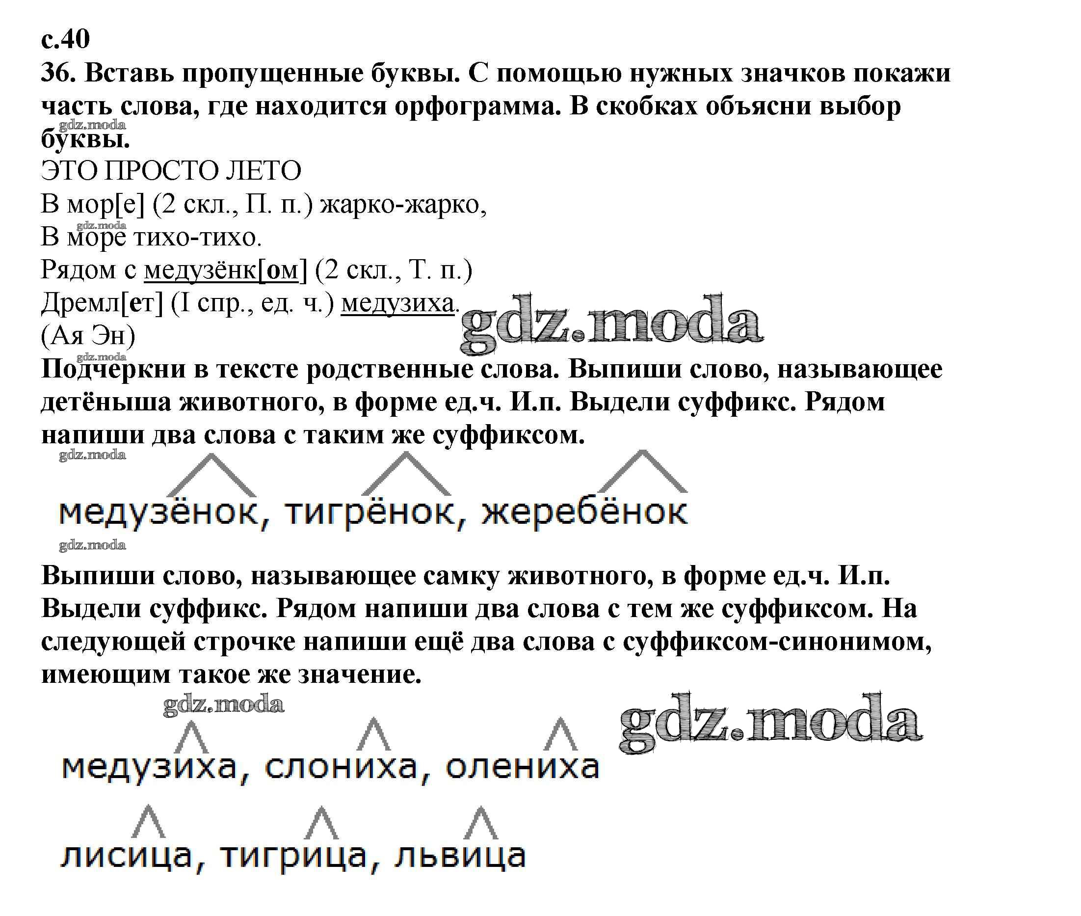 ОТВЕТ на задание № 40 Тетрадь для самостоятельной работы по Русскому языку 4 класс Байкова