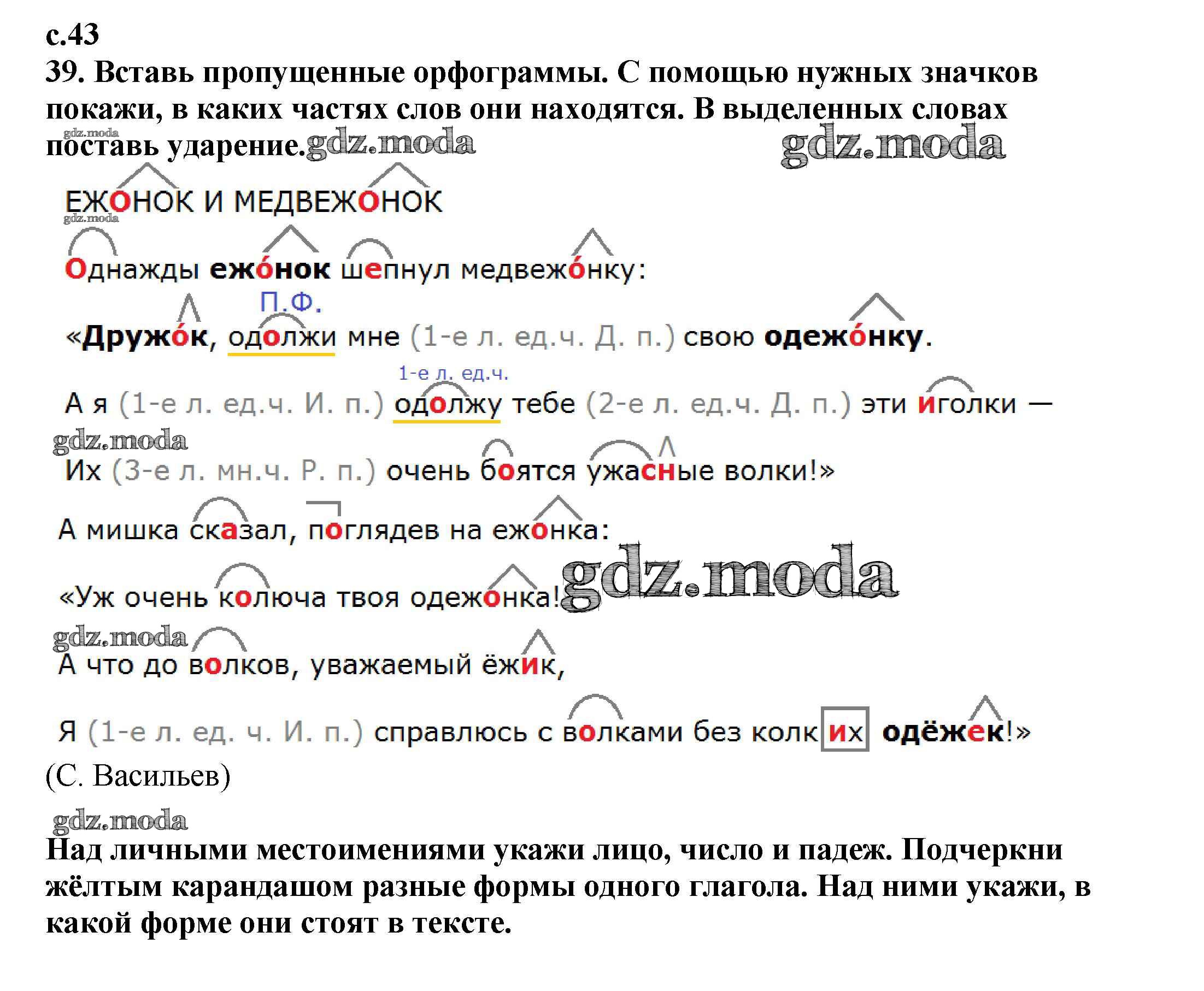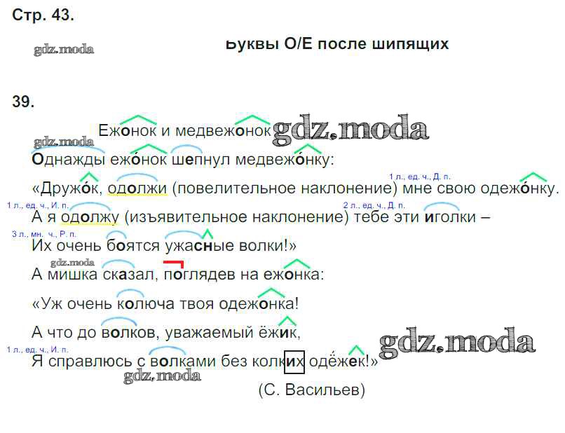 ОТВЕТ на задание № 43 Тетрадь для самостоятельной работы по Русскому языку 4 класс Байкова