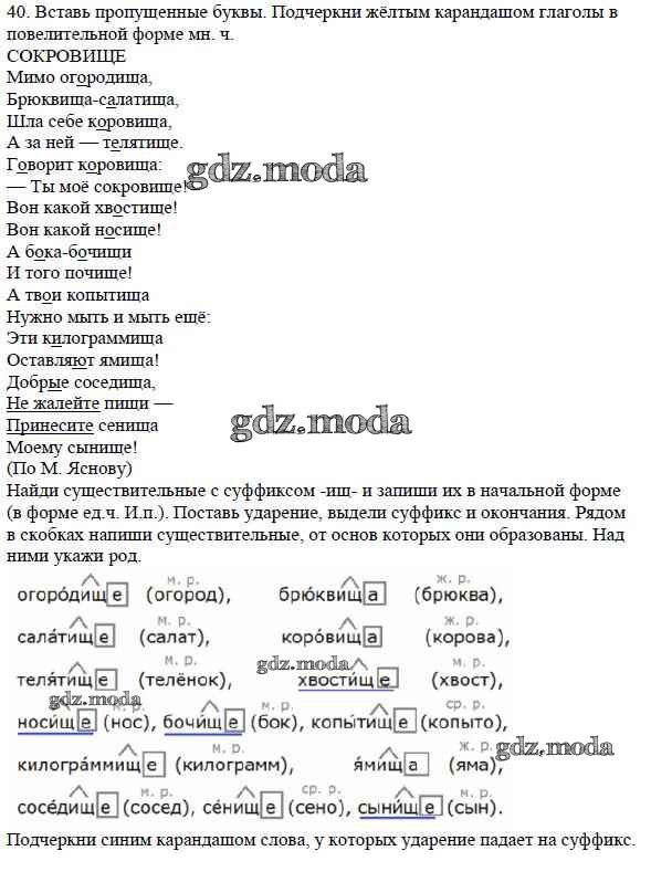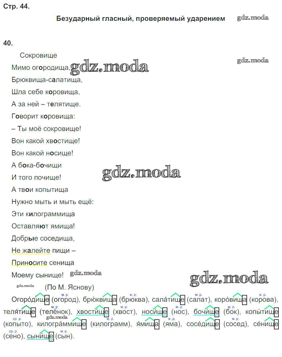 ОТВЕТ на задание № 44 Тетрадь для самостоятельной работы по Русскому языку 4 класс Байкова