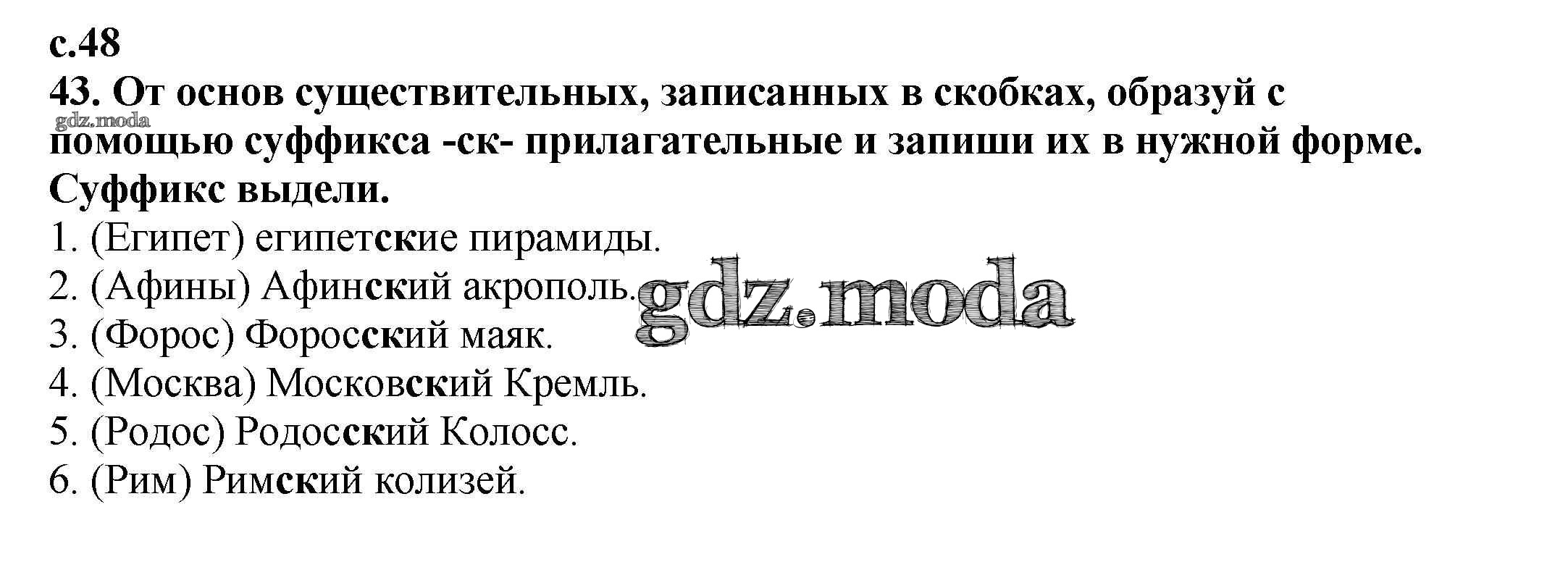ОТВЕТ на задание № 48 Тетрадь для самостоятельной работы по Русскому языку 4 класс Байкова