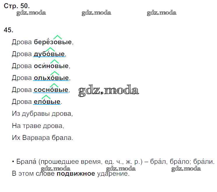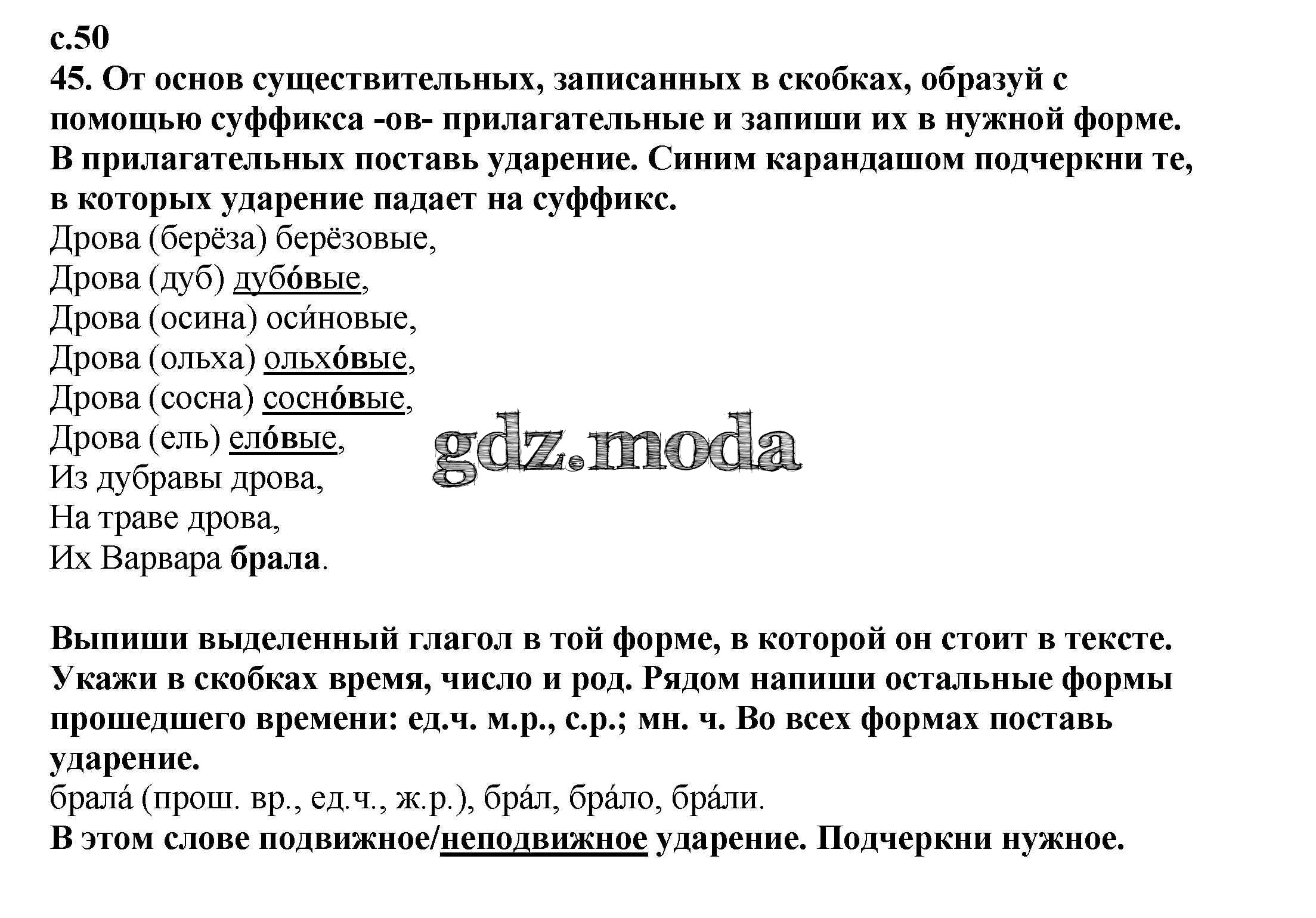 ОТВЕТ на задание № 50 Тетрадь для самостоятельной работы по Русскому языку 4 класс Байкова