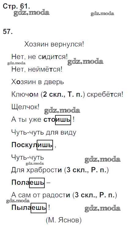 ОТВЕТ на задание № 61 Тетрадь для самостоятельной работы по Русскому языку 4 класс Байкова