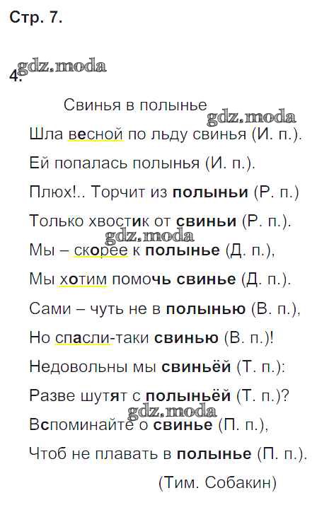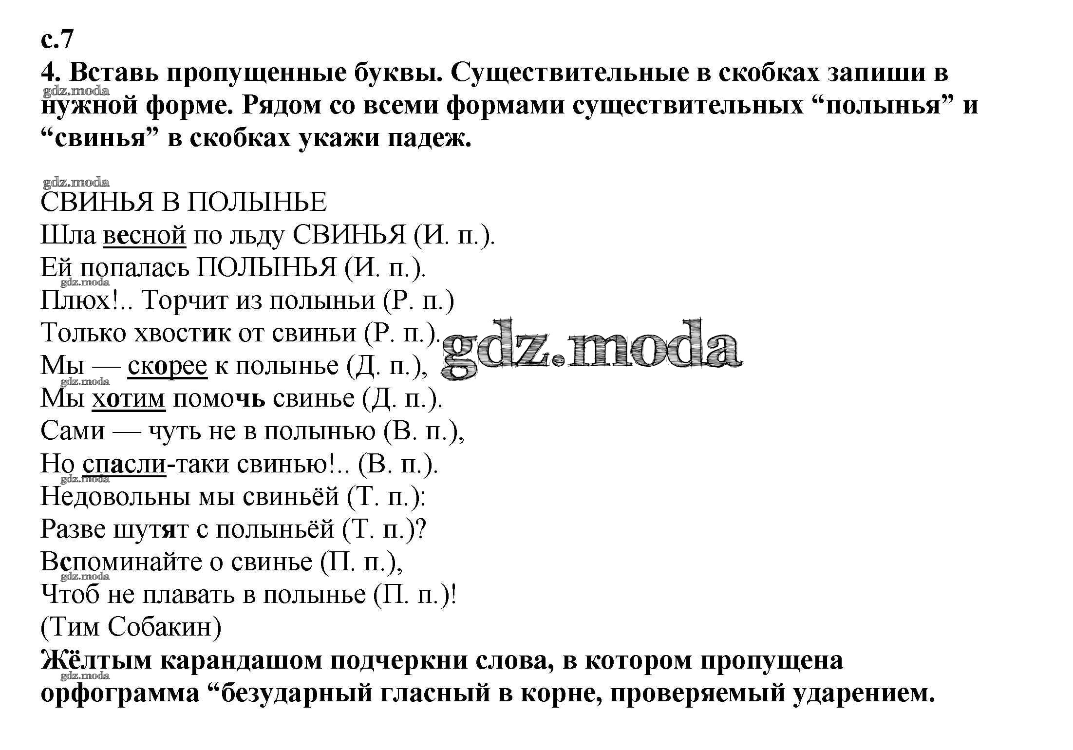 ОТВЕТ на задание № 7 Тетрадь для самостоятельной работы по Русскому языку 4 класс Байкова