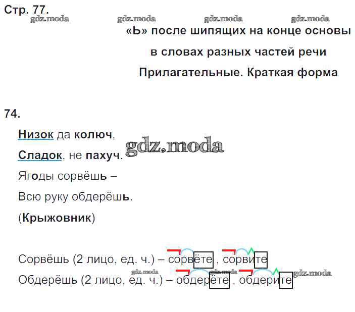 ГДЗ решение к заданию № 77 Русский язык 4 класс тетрадь для самостоятельных работ Байкова Т.А. Академкнига 2016 Часть 1, Часть 2 ФГОС бесплатно на гдз.мода!