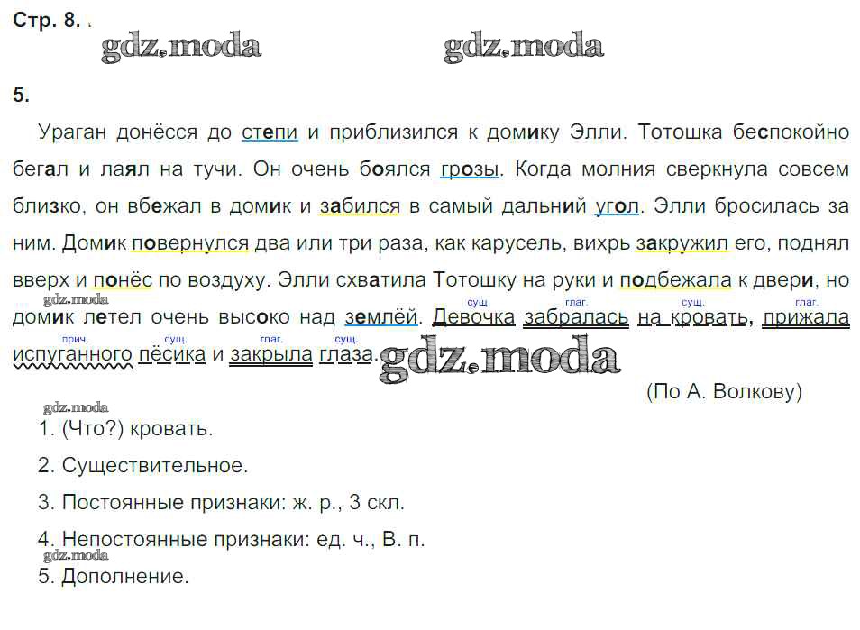 ОТВЕТ на задание № 8 Тетрадь для самостоятельной работы по Русскому языку 4 класс Байкова