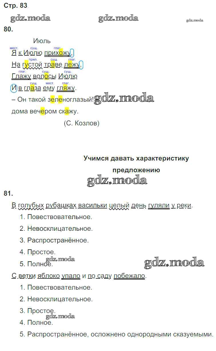 ГДЗ решение к заданию № 83 Русский язык 4 класс тетрадь для самостоятельных работ Байкова Т.А. Академкнига 2016 Часть 1, Часть 2 ФГОС бесплатно на гдз.мода!