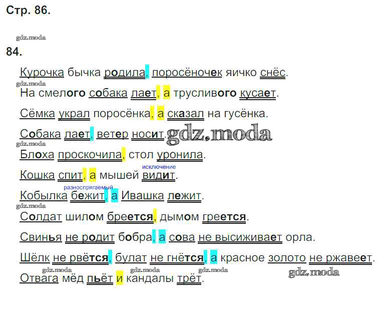 ГДЗ решение к заданию № 86 Русский язык 4 класс тетрадь для самостоятельных работ Байкова Т.А. Академкнига 2016 Часть 1, Часть 2 ФГОС бесплатно на гдз.мода!