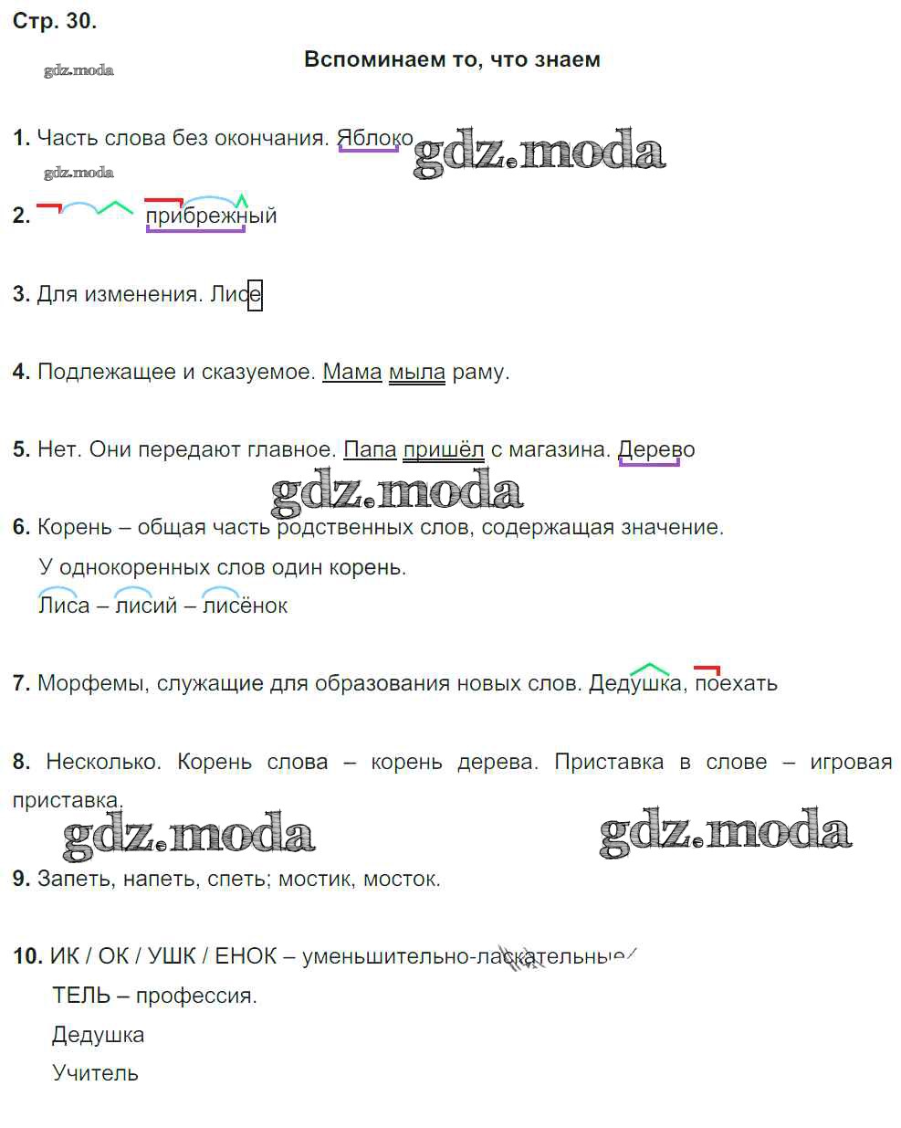 ОТВЕТ на задание № 30 Учебник по Русскому языку 4 класс Бунеев Школа 2100