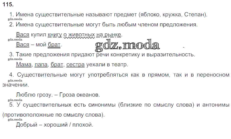 ОТВЕТ на задание № 115 Учебник по Русскому языку 4 класс Бунеев Школа 2100