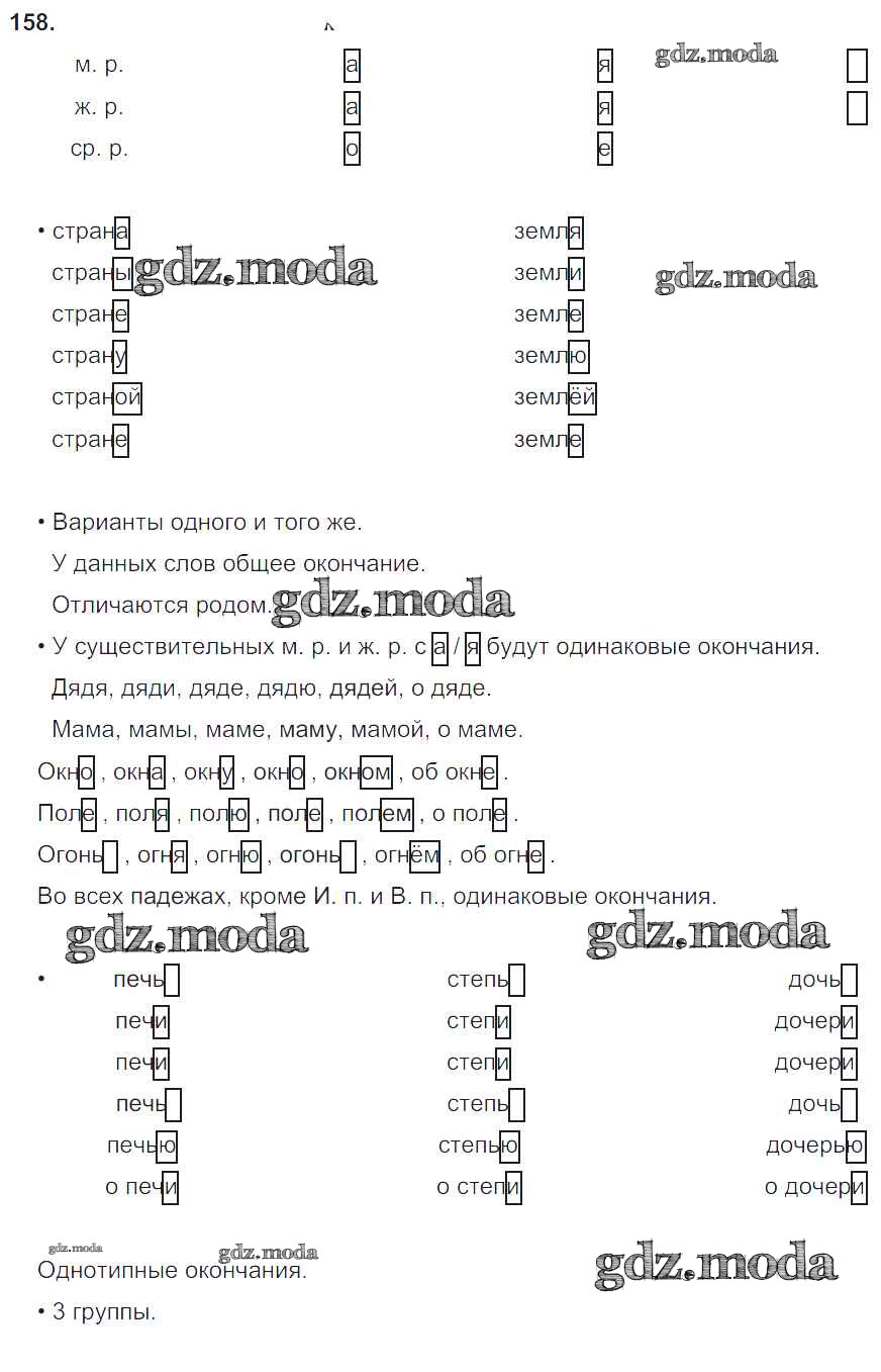 ОТВЕТ на задание № 158 Учебник по Русскому языку 4 класс Бунеев Школа 2100