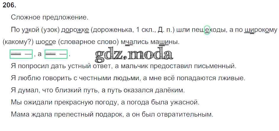 ОТВЕТ на задание № 206 Учебник по Русскому языку 4 класс Бунеев Школа 2100