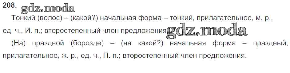 ОТВЕТ на задание № 208 Учебник по Русскому языку 4 класс Бунеев Школа 2100