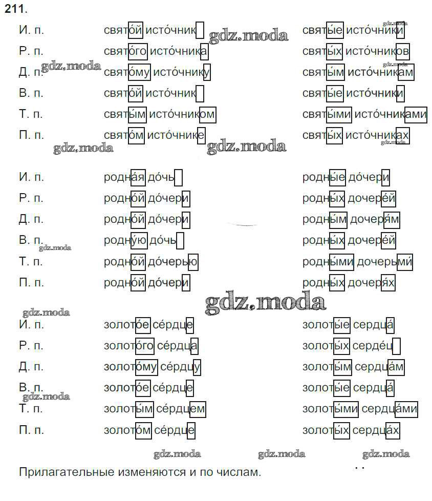 ОТВЕТ на задание № 211 Учебник по Русскому языку 4 класс Бунеев Школа 2100
