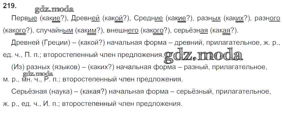 ОТВЕТ на задание № 219 Учебник по Русскому языку 4 класс Бунеев Школа 2100