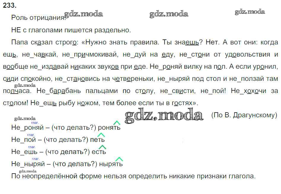 ОТВЕТ на задание № 233 Учебник по Русскому языку 4 класс Бунеев Школа 2100