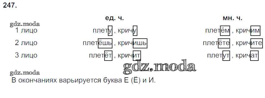 ОТВЕТ на задание № 247 Учебник по Русскому языку 4 класс Бунеев Школа 2100