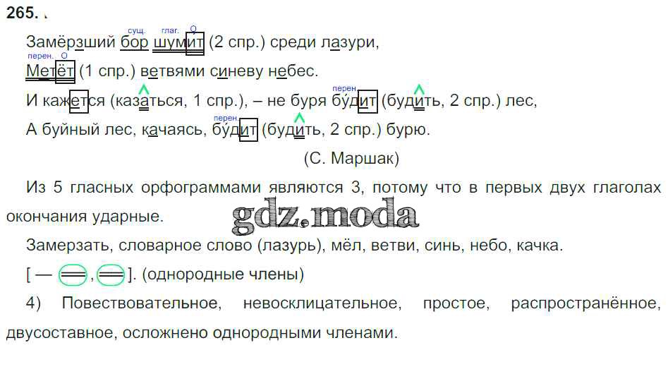 ОТВЕТ на задание № 265 Учебник по Русскому языку 4 класс Бунеев Школа 2100