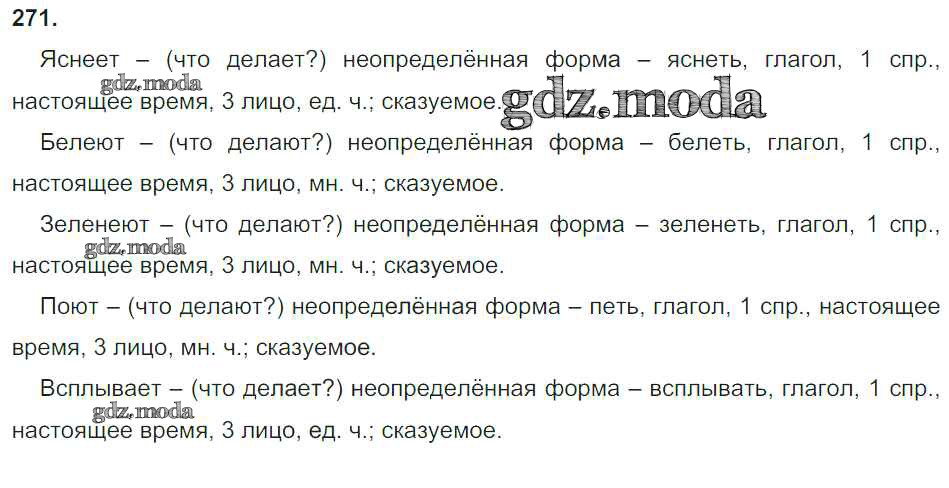 ОТВЕТ на задание № 271 Учебник по Русскому языку 4 класс Бунеев Школа 2100
