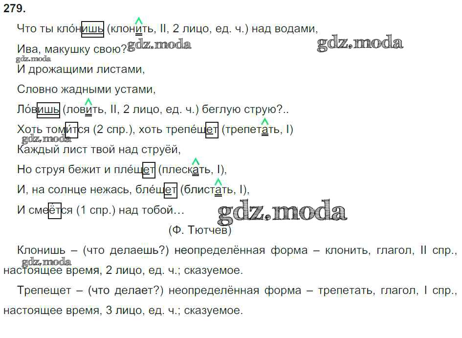 ОТВЕТ на задание № 279 Учебник по Русскому языку 4 класс Бунеев Школа 2100