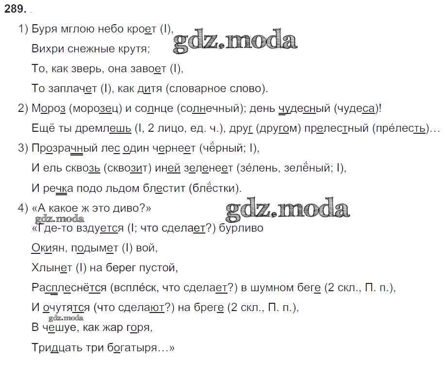 ОТВЕТ на задание № 289 Учебник по Русскому языку 4 класс Бунеев Школа 2100
