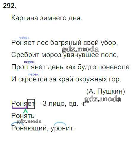 ОТВЕТ на задание № 292 Учебник по Русскому языку 4 класс Бунеев Школа 2100