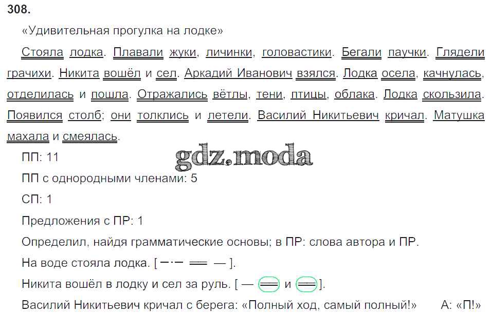 ОТВЕТ на задание № 308 Учебник по Русскому языку 4 класс Бунеев Школа 2100