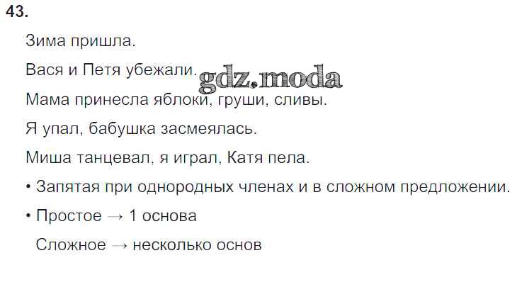 ОТВЕТ на задание № 43 Учебник по Русскому языку 4 класс Бунеев Школа 2100