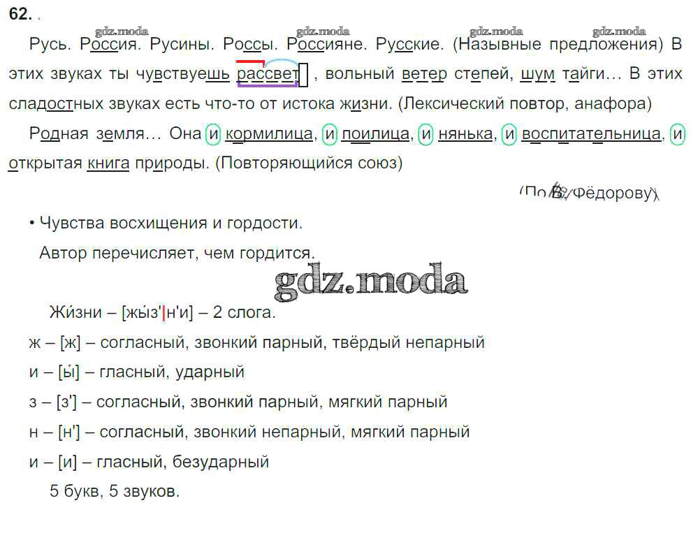 ОТВЕТ на задание № 62 Учебник по Русскому языку 4 класс Бунеев Школа 2100